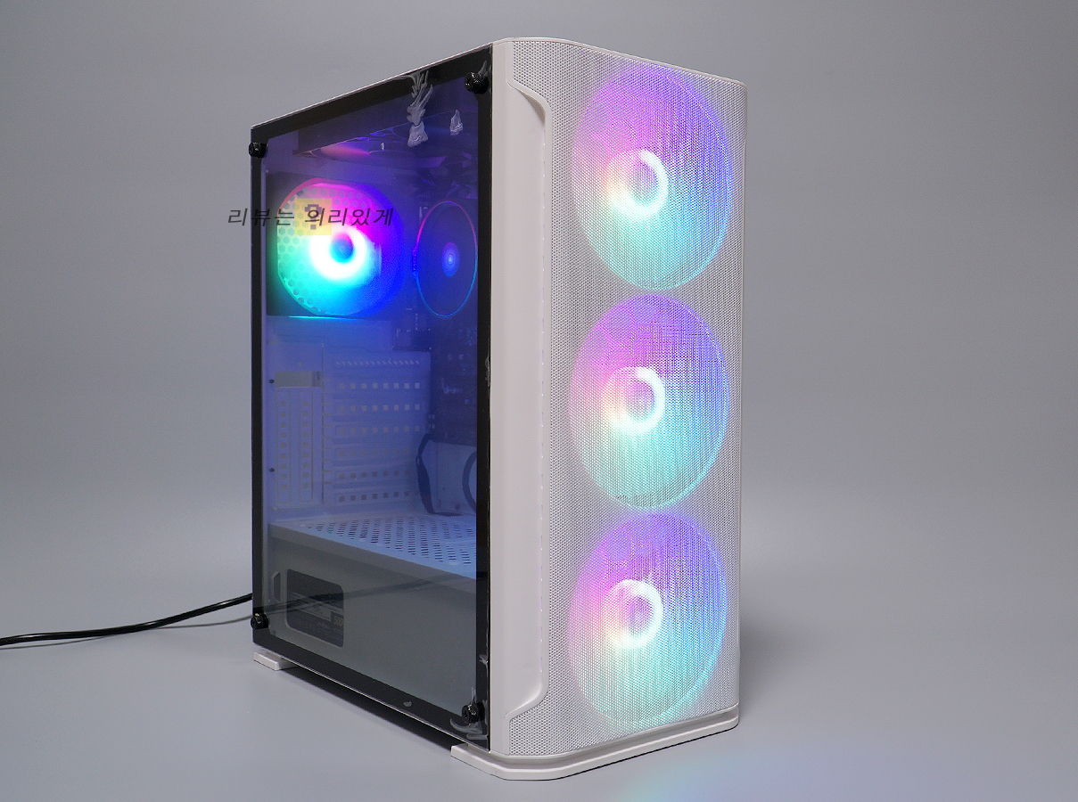 아이구주의 미들타워 케이스로 파워 전형적인 파워 가림막 구조를 가지고 있으며 측면 풀사이즈 강화유리 LED 팬과 같은 튜닝 요소가 들어 있습니다. 다른 보급형 케이스와 마찬가지로 6.4cm 베이 2개, 8.9cm 베이 2개로 무난한 확장성을 보여주고 있습니다.