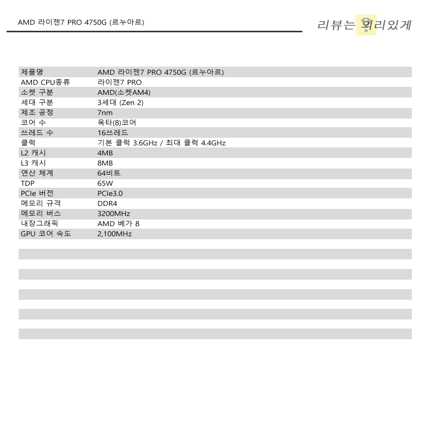 CPU : AMD 라이젠 7 PRO 4750G 르누아르