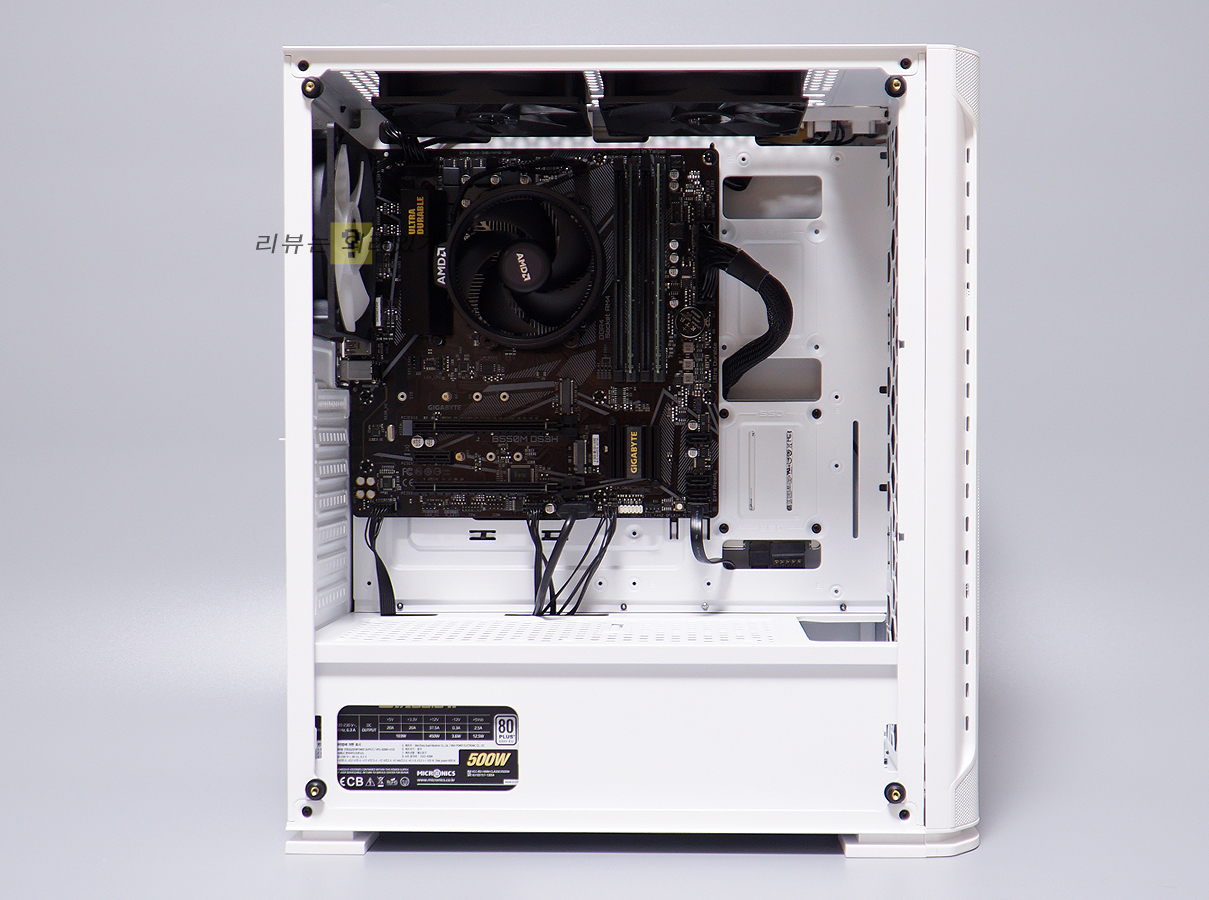 리뷰에 사용된 파워는 500W로 게이밍 PC 구성 시 다소 부족함을 느낄 수 있는 용량이지만 내장 그래픽을 사용하는 르누아르 완본체 PC에서는 충분히 여유로운 사용이 가능합니다.
