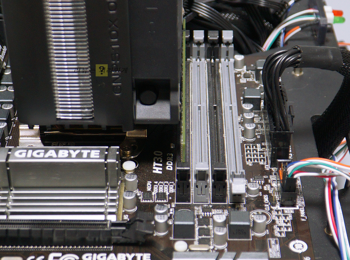 CPU 공랭 쿨러 장착 시 발생하는 문제점 중 하나가 RAM과 간섭 문제입니다. 어떤 메인보드를 사용하는가에 따라 호환 문제가 발생할 수 있지만 대부분의 상황을 고려하여 웬만해서는 CPU 쿨러와 RAM과 서로 간섭이 없도록 해야 합니다.
