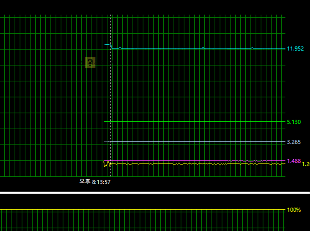AIDA 64 테스트 결과 +3.3V와 +5V는 변동폭이 크지 않았으나 그에 비해 +12V는 변동폭이 조금 있는 것을 확인할 수 있었습니다. 이는 액티브 PFC가 없기 때문으로 보이며 제품 가격대와 주요 사용 목적을 생각할 때 무조건 안 좋은 부분이라 보기는 어렵습니다.