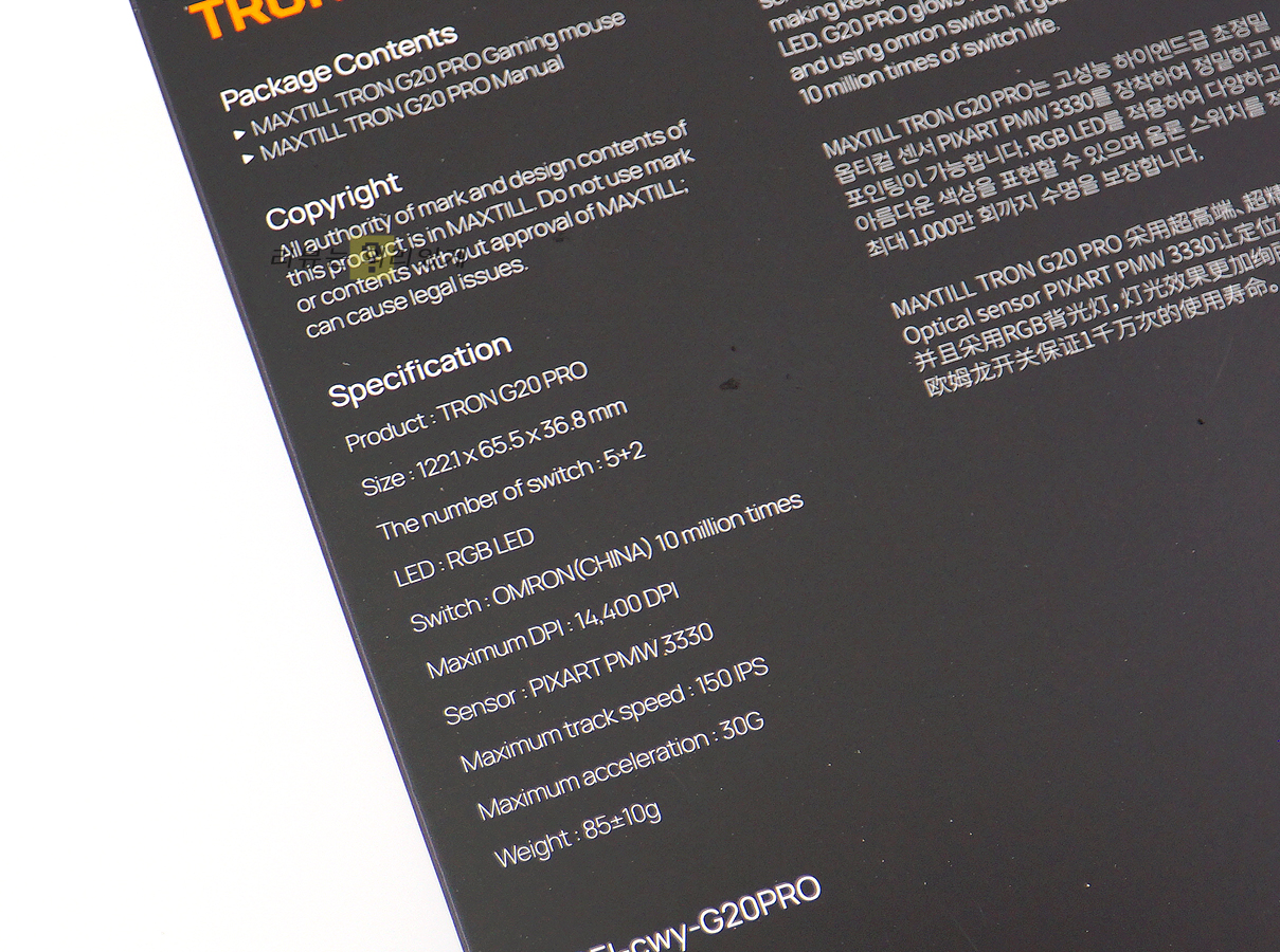맥스틸의 대표하는 마우스는 사람에 따라 다르겠지만 저는 개인적으로 G10, G20이라 생각합니다. 한때 맥스틸의 주력 제품이기도 했었고 PC방 등에서도 쉽게 찾아볼 수 있을 정도로 익숙한 마우스 중 하나였습니다. 그래서인지 G20은 처음 출시를 시작한 이후부터 지금의 PRO에 이르기까지 리뉴얼을 거치면서 기존 제품의 단점을 보완하고 지금 트렌드에 맞게 재출시 하는 등의 변화를 추가적으로 넣고자 하였습니다.
