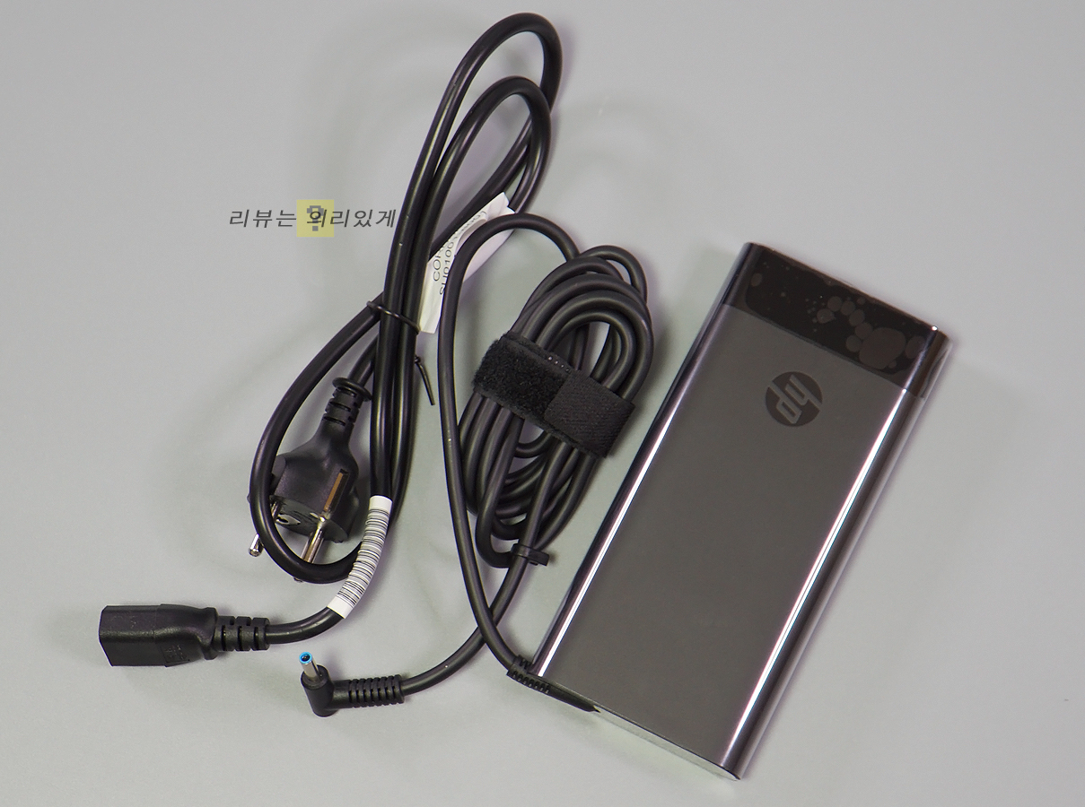 19.5V, 10.3A 200W 어댑터를 제공하고 있으며 추가적인 보호 필름이 부착되어 있으며 선 정리를 위한 벨크로 타이가 부착되어 있습니다. 고속 충전을 지원하여 자사의 HP Fast Charging 기술이 적용되어 45분 만에 최대 50%까지 배터리 고속 충전이 가능합니다.