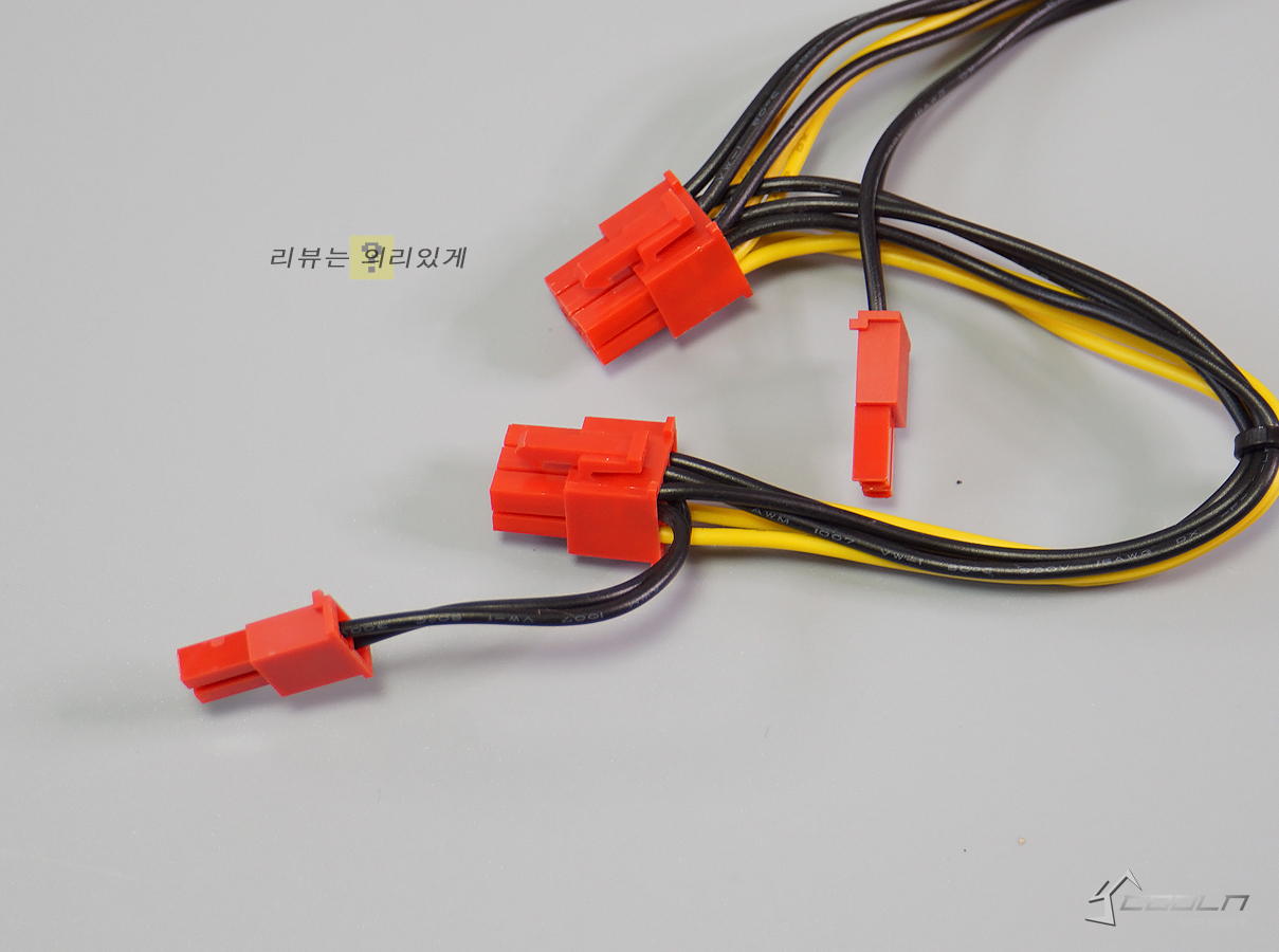 파워 케이블은 과거 많은 파워에서 볼 수 있었던 여러 색상이 섞여 있는 방식을 사용하고 있으며 20+4핀 전원 케이블에만 슬리빙 처리가 되어 있습니다. 제품 출시 일자가 오래된 것과 보급형 파워의 한계로 생각할 수 있으나 나머지 케이블에 슬리빙 또는 플랫 처리가 되어 있지 않는 것은 다소 아쉬운 부분이라 할 수 있습니다.