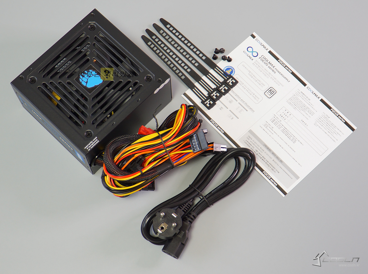 다양한 가격대의 파워가 존재하지만 그중에서 가장 많이 사용하는 제품군은 아마 보급형이 아닐까 생각하고 있습니다. 그중에서 마이크로닉스에서 유통하는 쿨맥스 포커스 시리즈는 100W 당 1만 원 법칙에 적용해도 저렴한 편에 속하나 80PLUS 230V EU 인증과 최대 효율 85%를 보장하고 있으며 액티브 PFC 회로 구성과 대기전력 1W 같은 특징들로 무난하게 사용이 가능한 파워라 할 수 있습니다.
