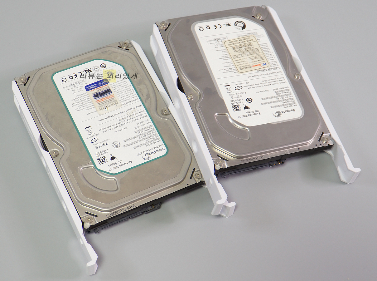HDD 또는 SSD 장착이 가능하며 최대 2개까지 사용 가능합니다. 조립 나사 없이 장착이 가능하지만 이러한 방식은 내구성이 좋지 않아 개인적으로 선호하지 않습니다.