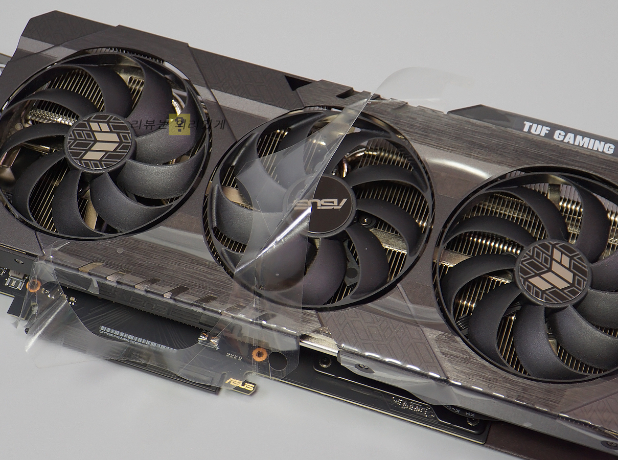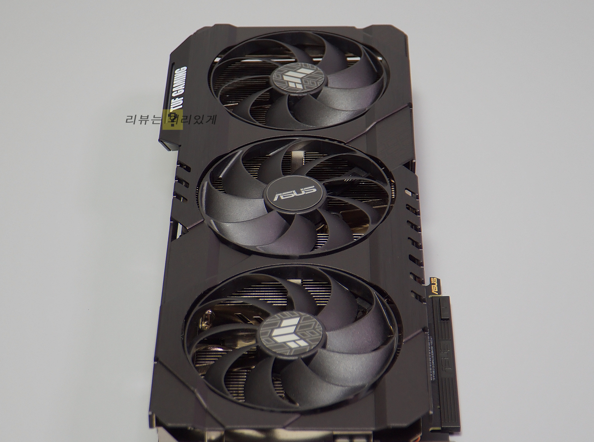 두 개의 측면 팬은 가운데 팬과 달리 시계 반대 방향으로 작동하는 데 이는 난류를 줄여주는 효과가 있습니다. 팬 가운데 부착된 스티커로 팬 회전 방향이 다르다는 것을 추측할 수 있습니다.