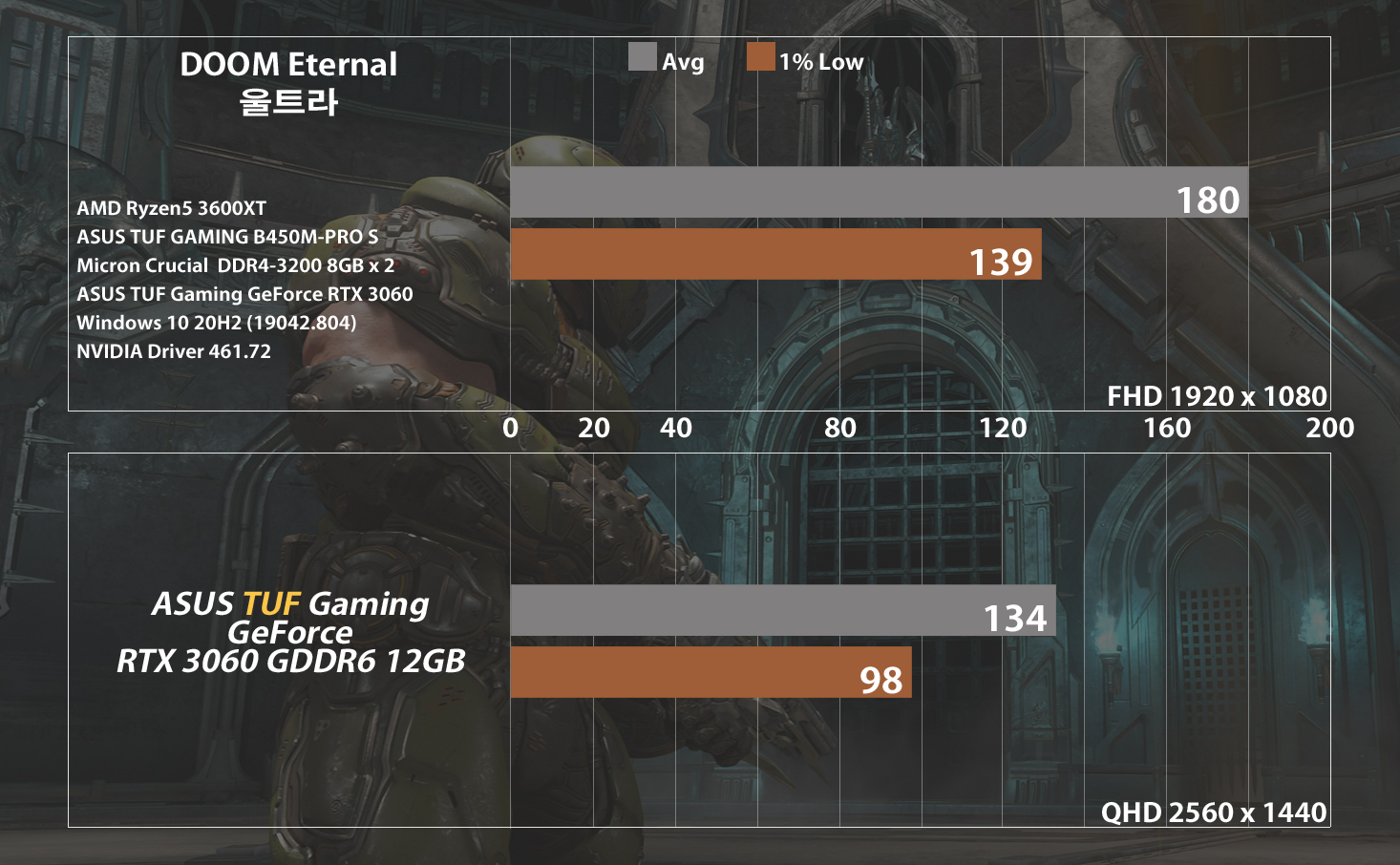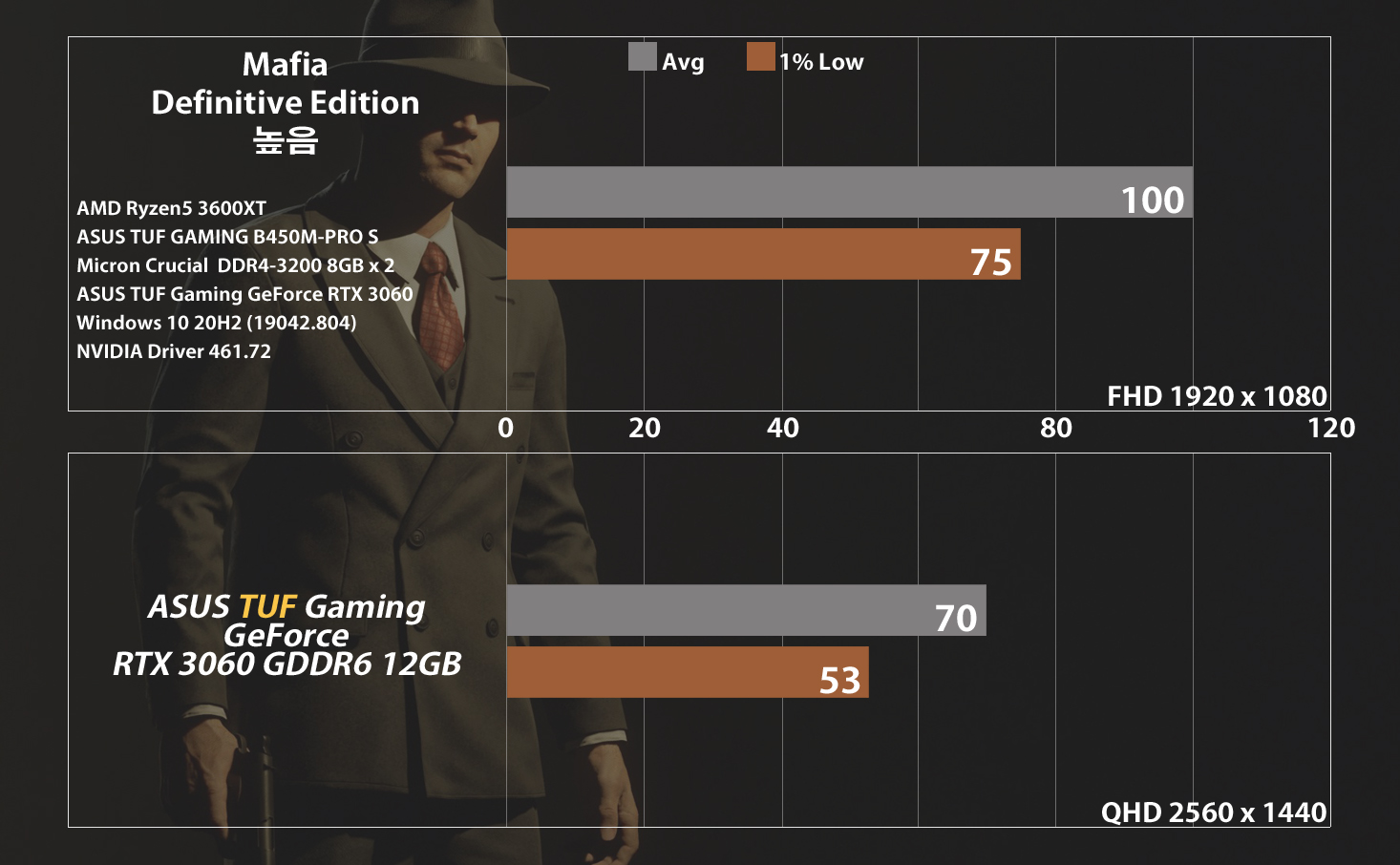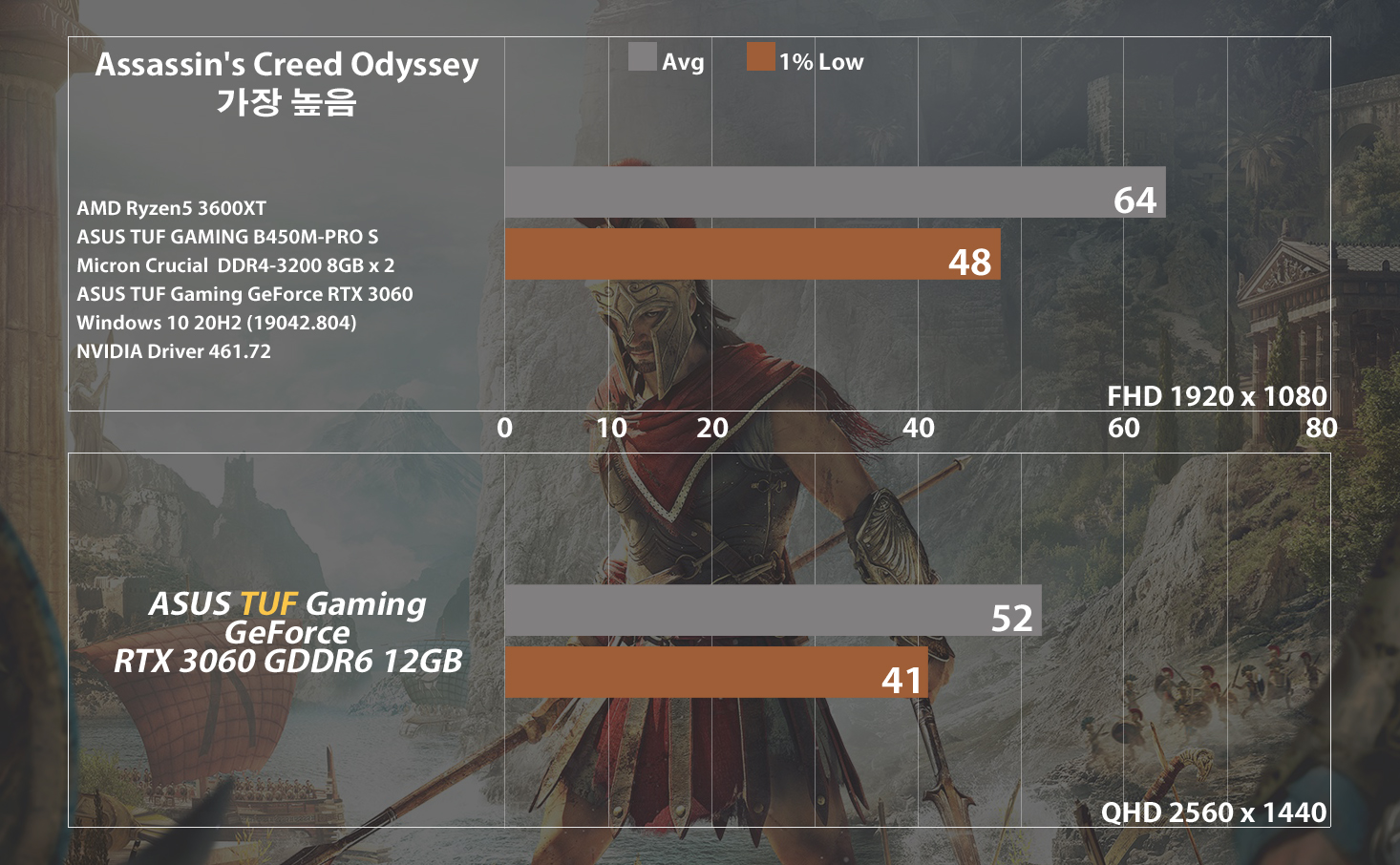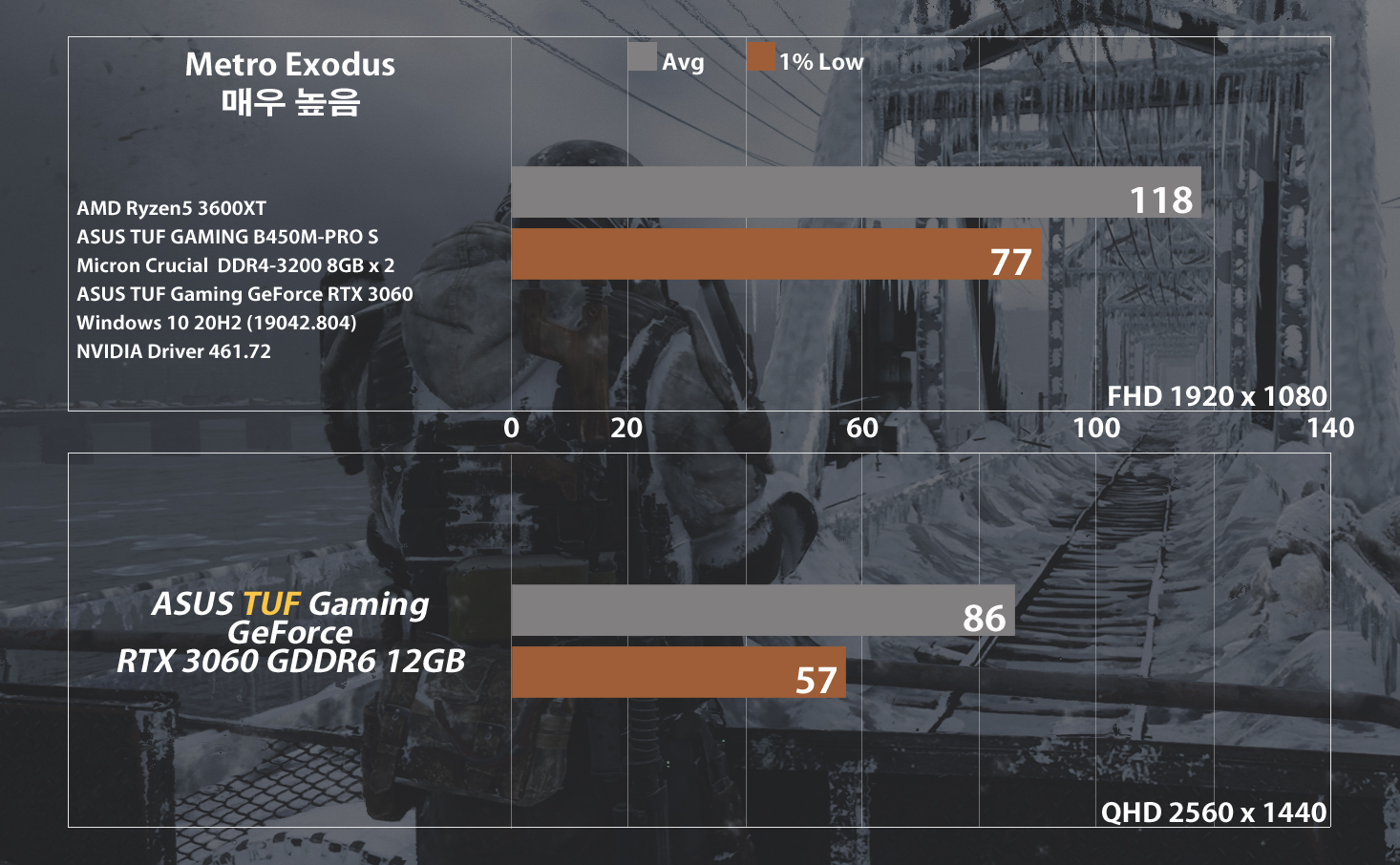 게임에 따라 QHD 해상도에서 다소 부족한 모습이 보였지만 게임 구동이 어려울 정도는 아니었으며 FHD 해상도에서는 충분한 성능을 보여주고 있었습니다.