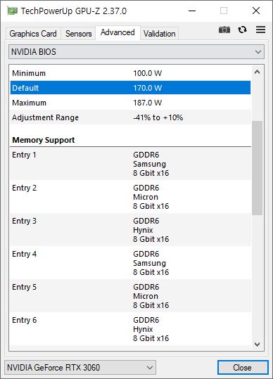 GPU-Z로 확인한 ASUS TUF Gaming 지포스 RTX 3060 O12G OC D6 12GB
