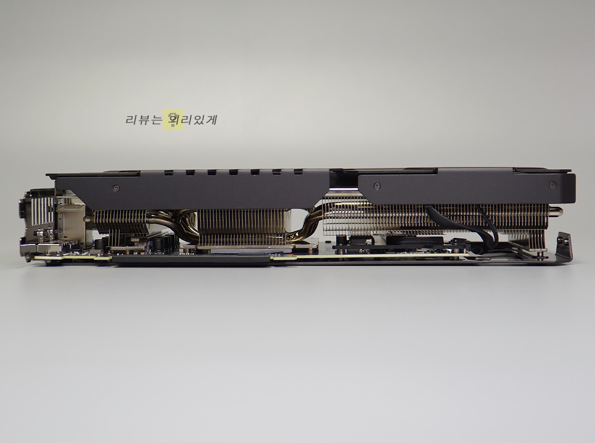 쿨링에는 6mm 히트파이프 5개가 사용되었으며 후면에는 4개의 히트파이프가 부착되어 있습니다. 양쪽 측면 모두 막힘없이 개방된 디자인을 보여주고 있습니다.