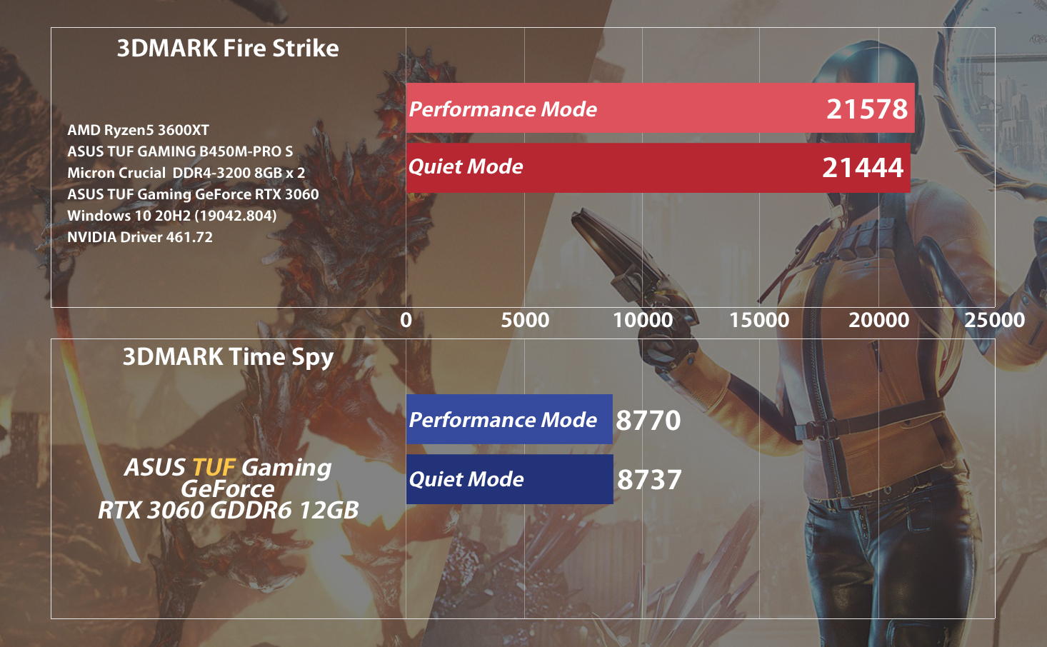 퍼포먼스 모드와 콰이어트의 차이는 그리 크지 않았으며 결과만 본다면 RTX 2060 SUPER 정도로 볼 수 있습니다.