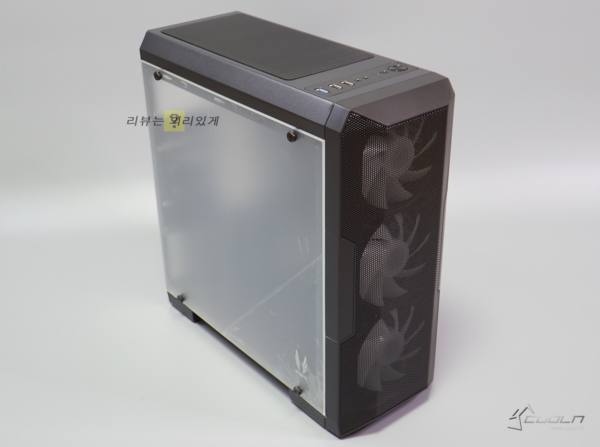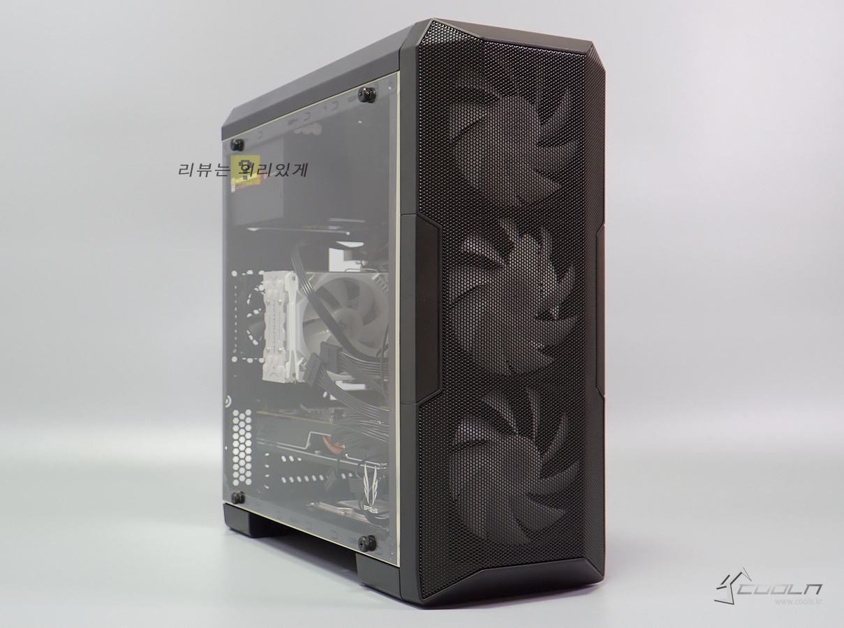 측면 아크릴은 보호 필름이 부착되어 있어 스모그 처리가 되어 있는 것처럼 보입니다. 필름을 제거하면 내부까지 잘 보이는 풀사이즈 아크릴을 확인할 수 있습니다.