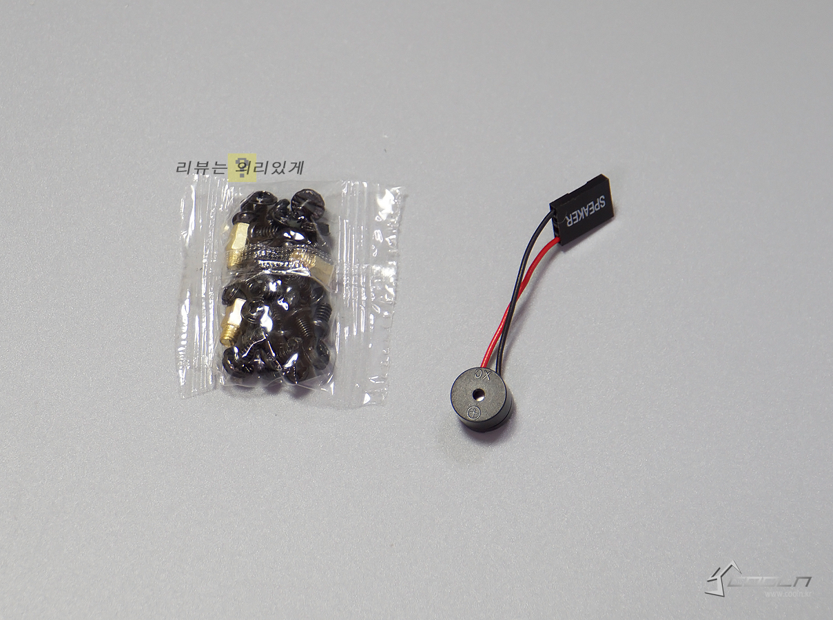 제품 구성품은 조립 나사, 비프음 스피커가 제공되며 아쉽게도 설명서는 포함되어 있지 않았습니다.