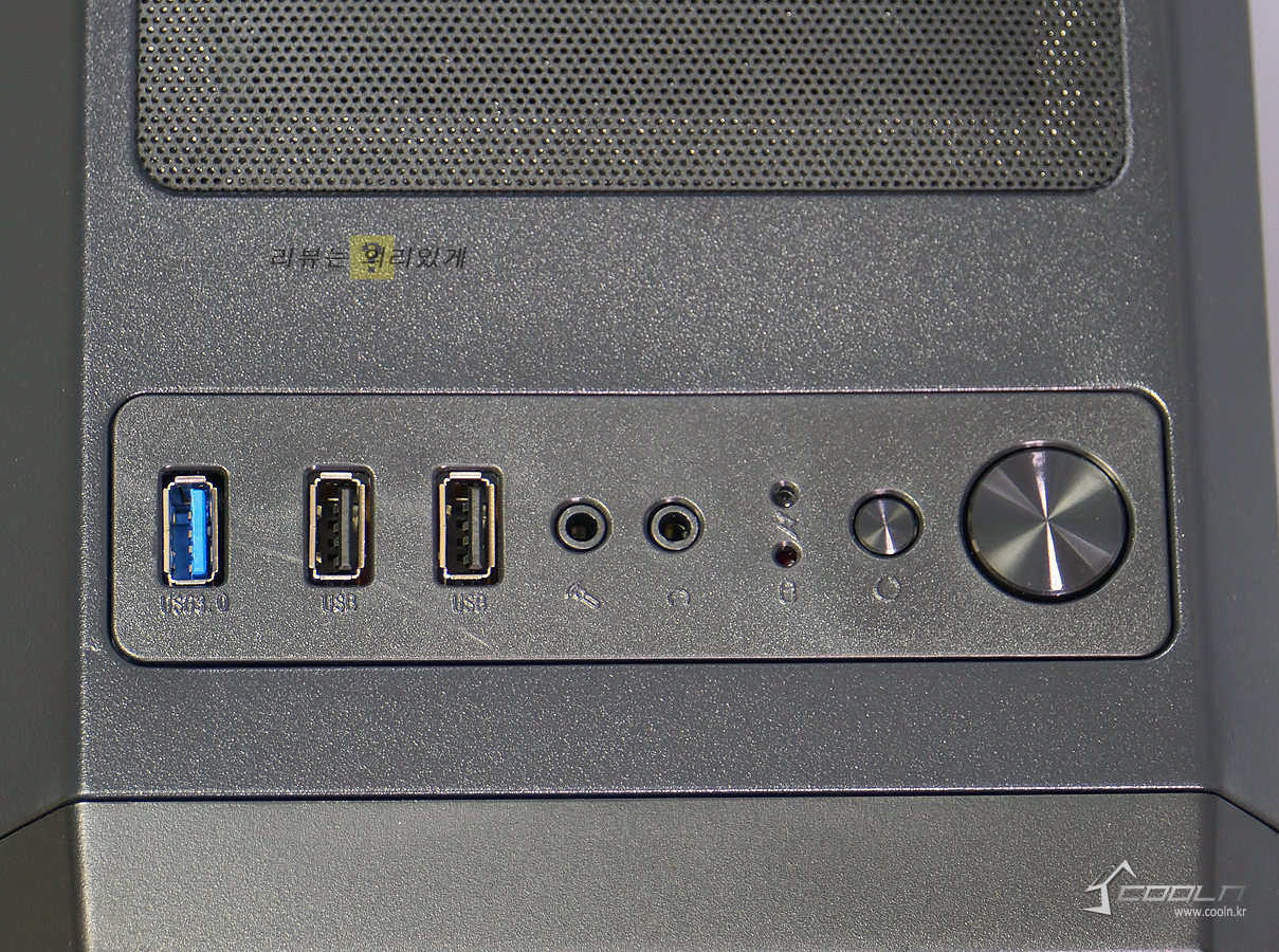 전면부 대부분은 메쉬 타공 처리가 되어 있으며 측면에 디자인적 요소를 확인할 수 있습니다. 또한 전체적인 마감 상태는 제품 가격대를 생각해 볼 때 무난한 정도라 생각합니다.