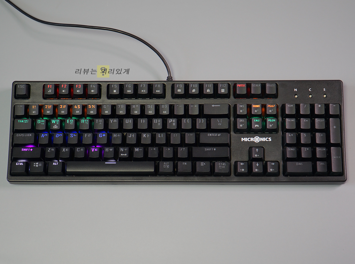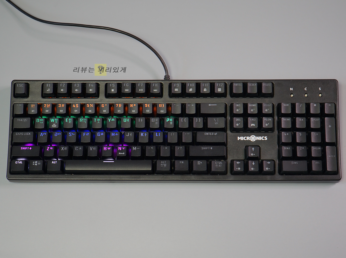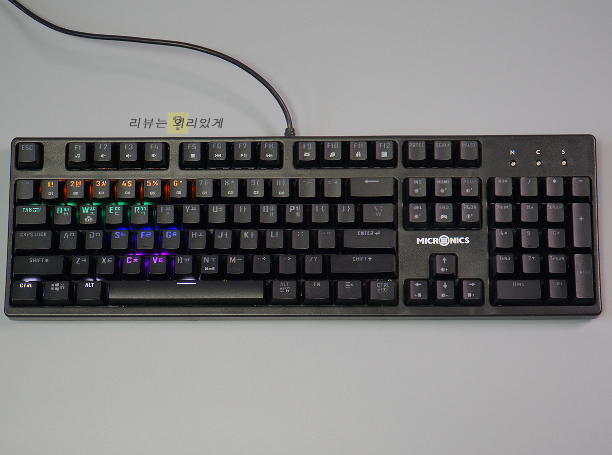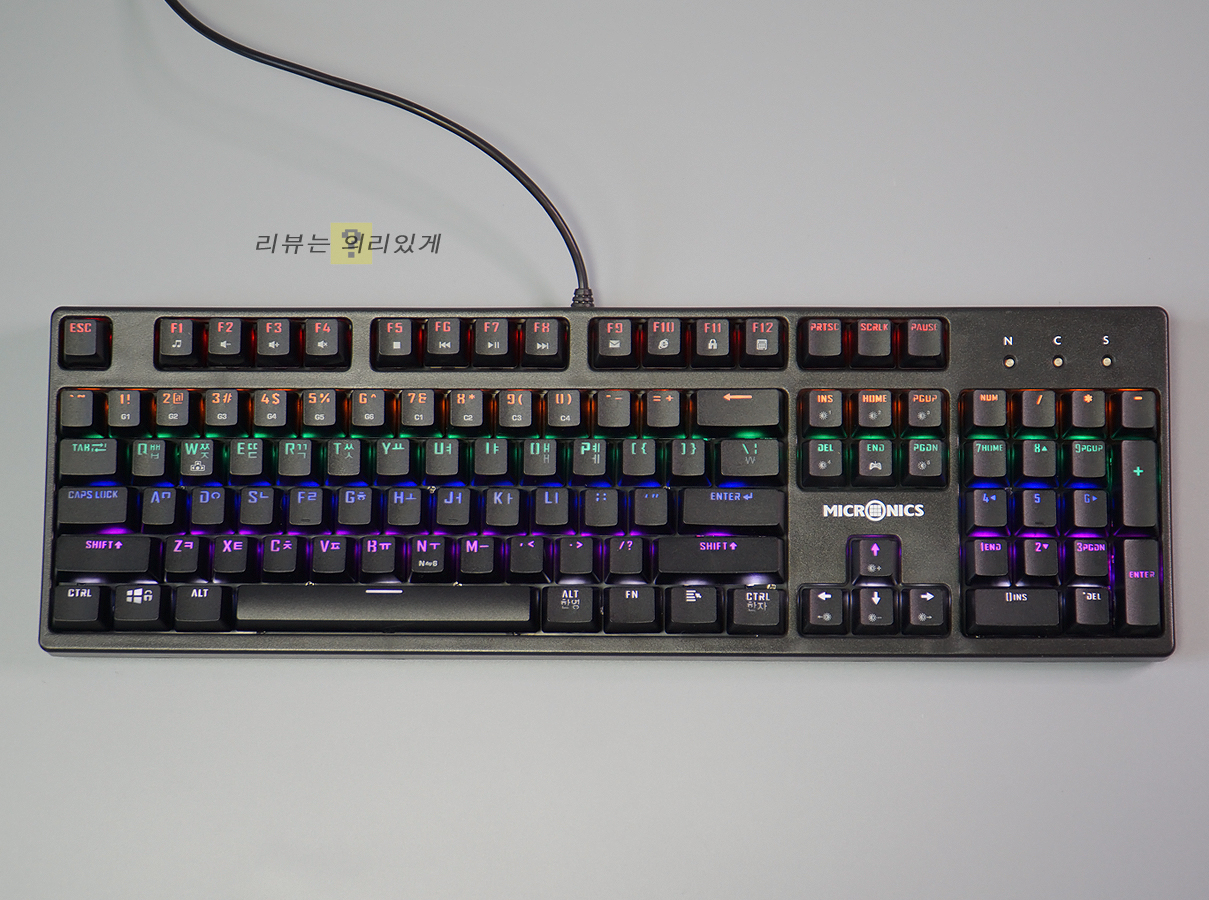 마이크로닉스 MANIC X100 마닉축 기계식 게이밍 키보드는 이 가격대에 기계식 키보드가 판매되는 것이 놀라울 정도로 저렴한 제품입니다. 이러한 가격대는 고가의 제품이 부담스러운 사용자에게 부담 없는 가격을 제시하고 있다는 점에서 의미하는 바가 큽니다. 물론 가격대를 생각할 때 소프트웨어, RGB LED, 알루미늄 상판 등 부가적인 요소가 제외되었긴 하지만 이 가격대에 만나볼 수 있다면 그 정도는 감수해야 할 것입니다.