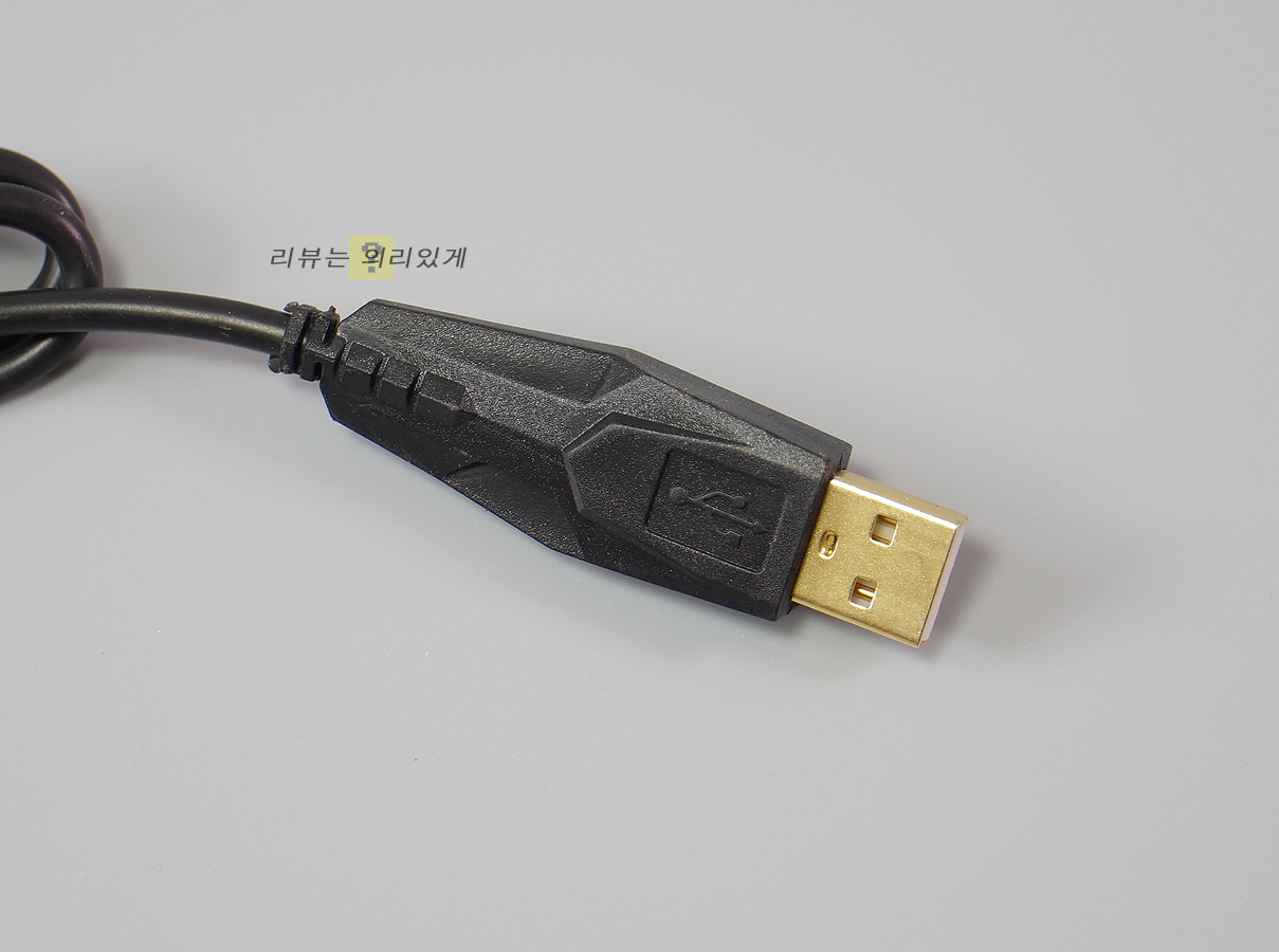 케이블은 특별함 없는 방식이며 길이는 약 156cm입니다. 중간에 노이즈 필터가 부착되어 있으며 USB 포트는 금도금 되어 있습니다.
