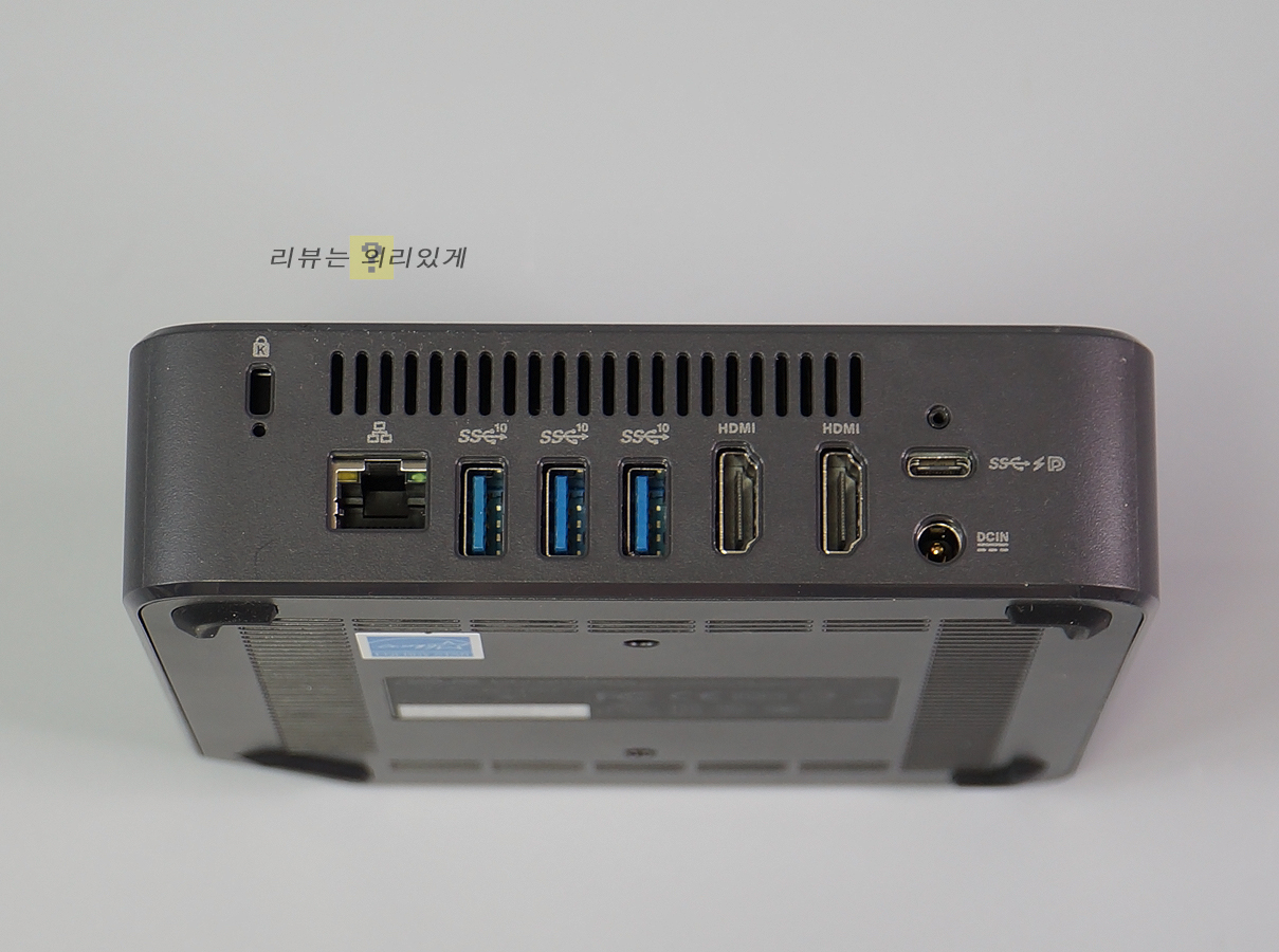 각 모서리면에는 입/출력 포트가 부착되어 있는데 USB 3.1 Gen2 2개, 오디오 잭, 마이크로 SD 포트 1개, USB 3.1 Gen2 3개, USB 3.1 Gen1 type-C 1개, HDMI 2개, LAN(RJ45) 포트 1개, DC in, kensington lock 포트가 각각 부착되어 있습니다.