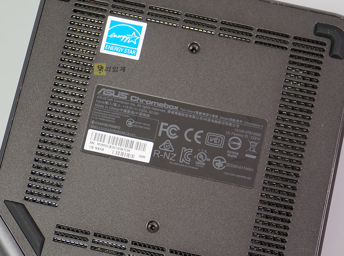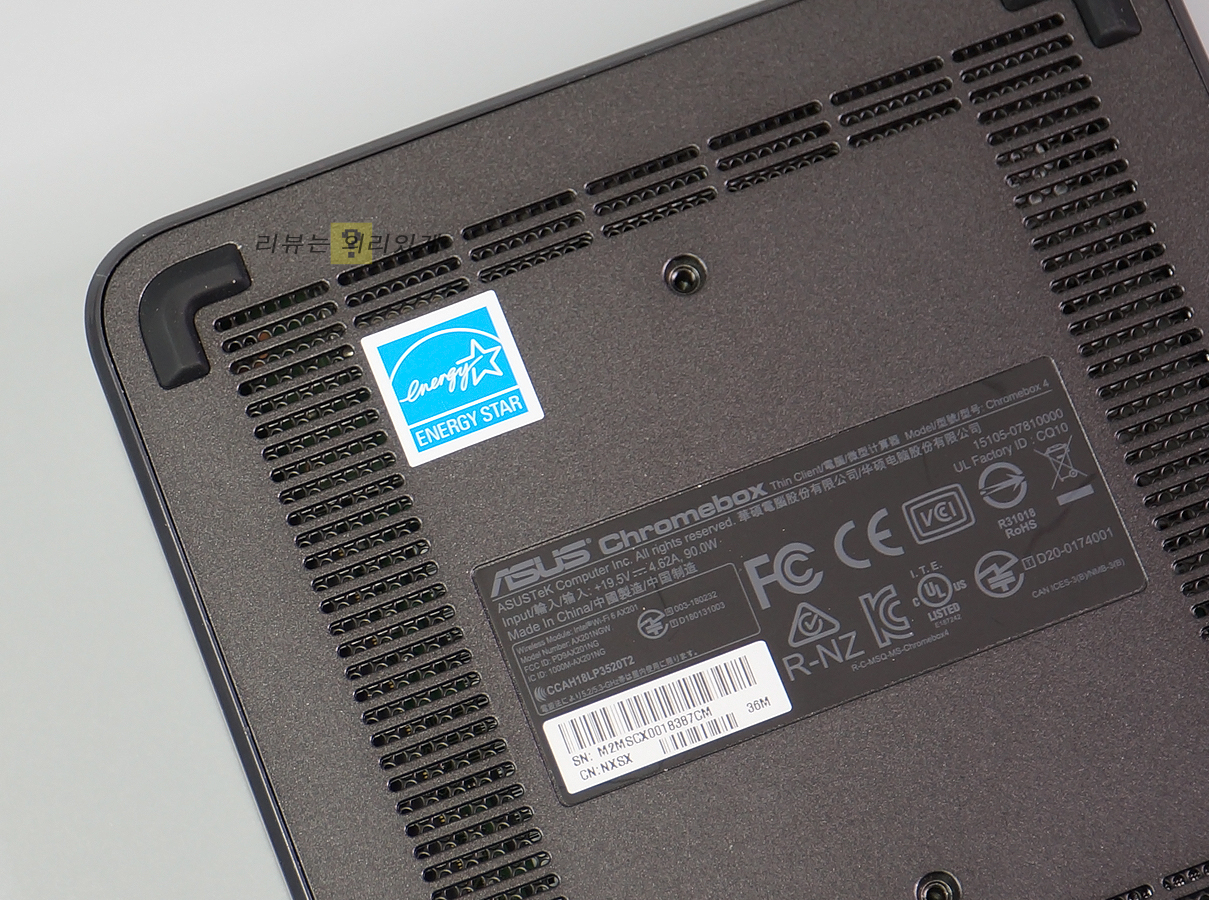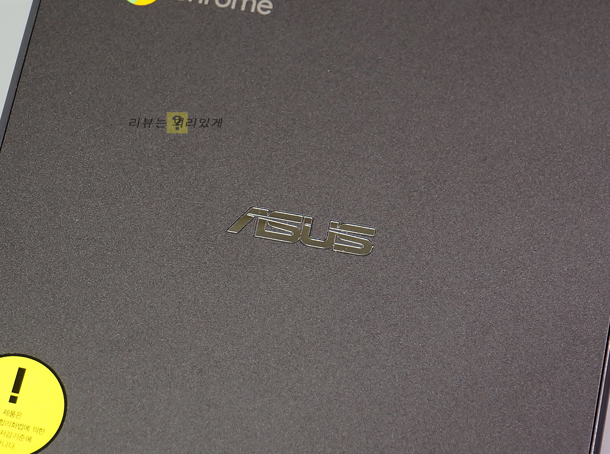 크롬 OS를 사용하는 만큼 상판에 크롬 로고를 확인할 수 있으며 가운데 에이수스 로고가 각인되어 있습니다.
