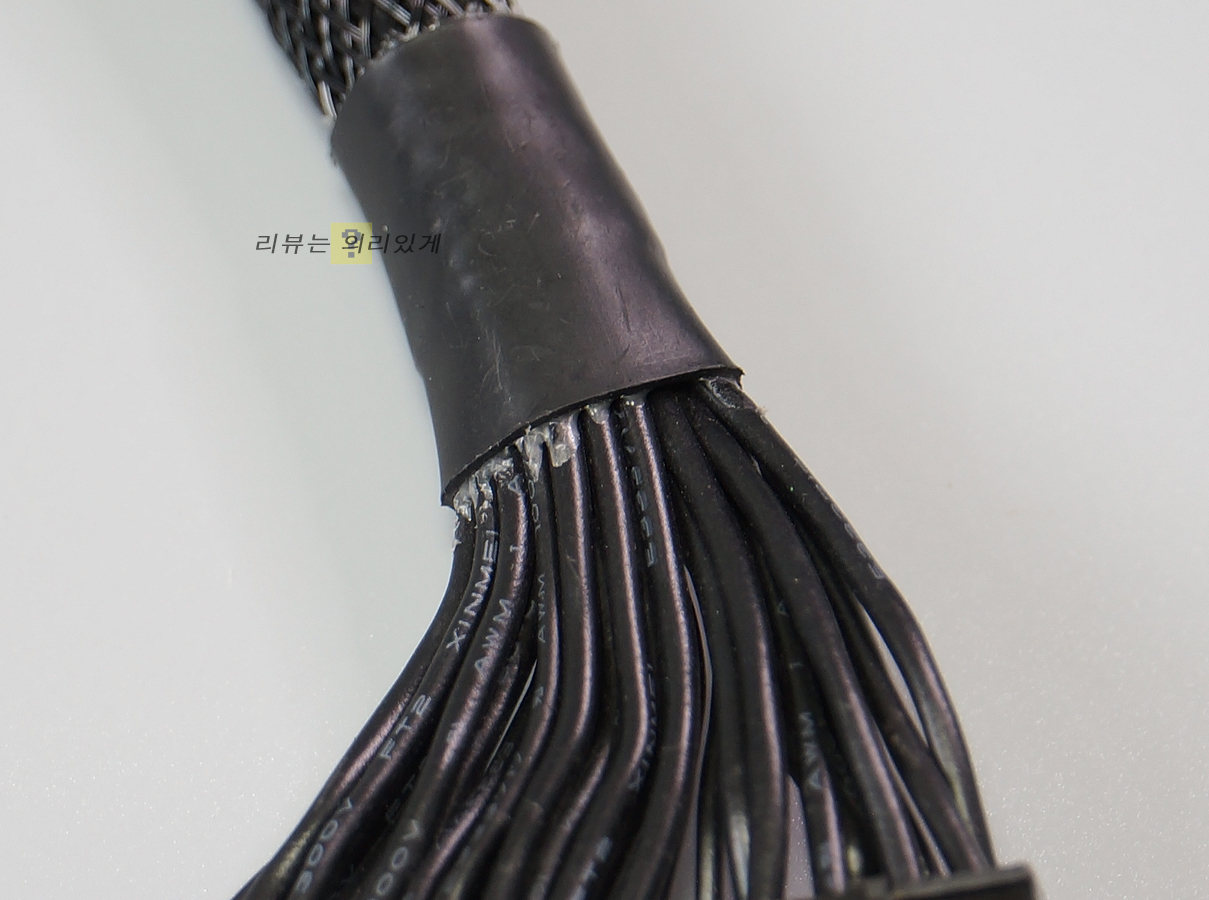 다만 위 이미지에서 확인하였듯이 마감에서 아쉬운 부분이 존재하였는데 다나와 기준 최저가 약 114,500원으로 제품 가격대가 높아졌음에도 케이블에 접착제 흔적이 보이거나 슬리빙 마감 상태가 좋아 보이지 않는 등의 마감 처리 상태가 보였습니다.
