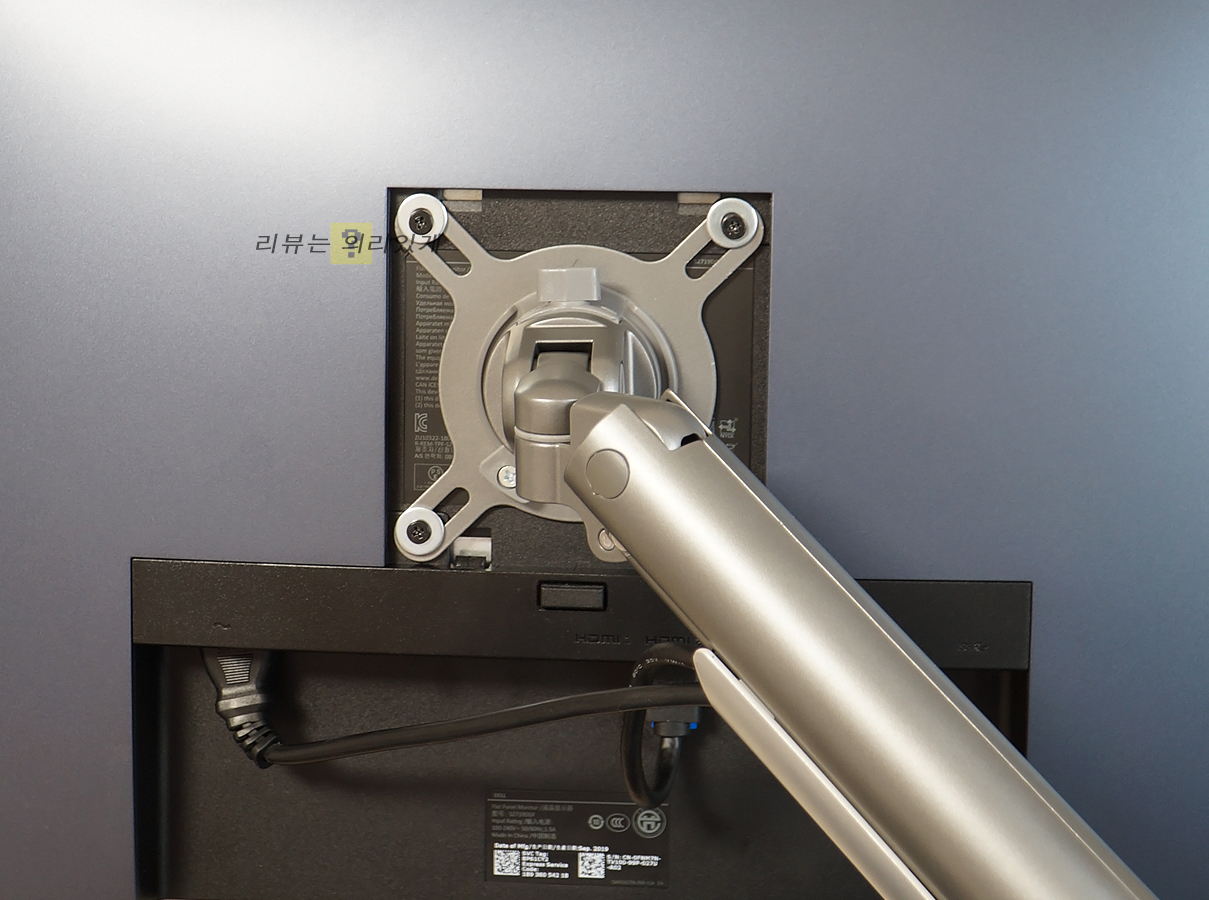 모니터를 장착할 경우 결합된 케이블 선 정리를 위해 위 이미지처럼 커버가 부착되어 있으며 밀어서 탈착합니다.