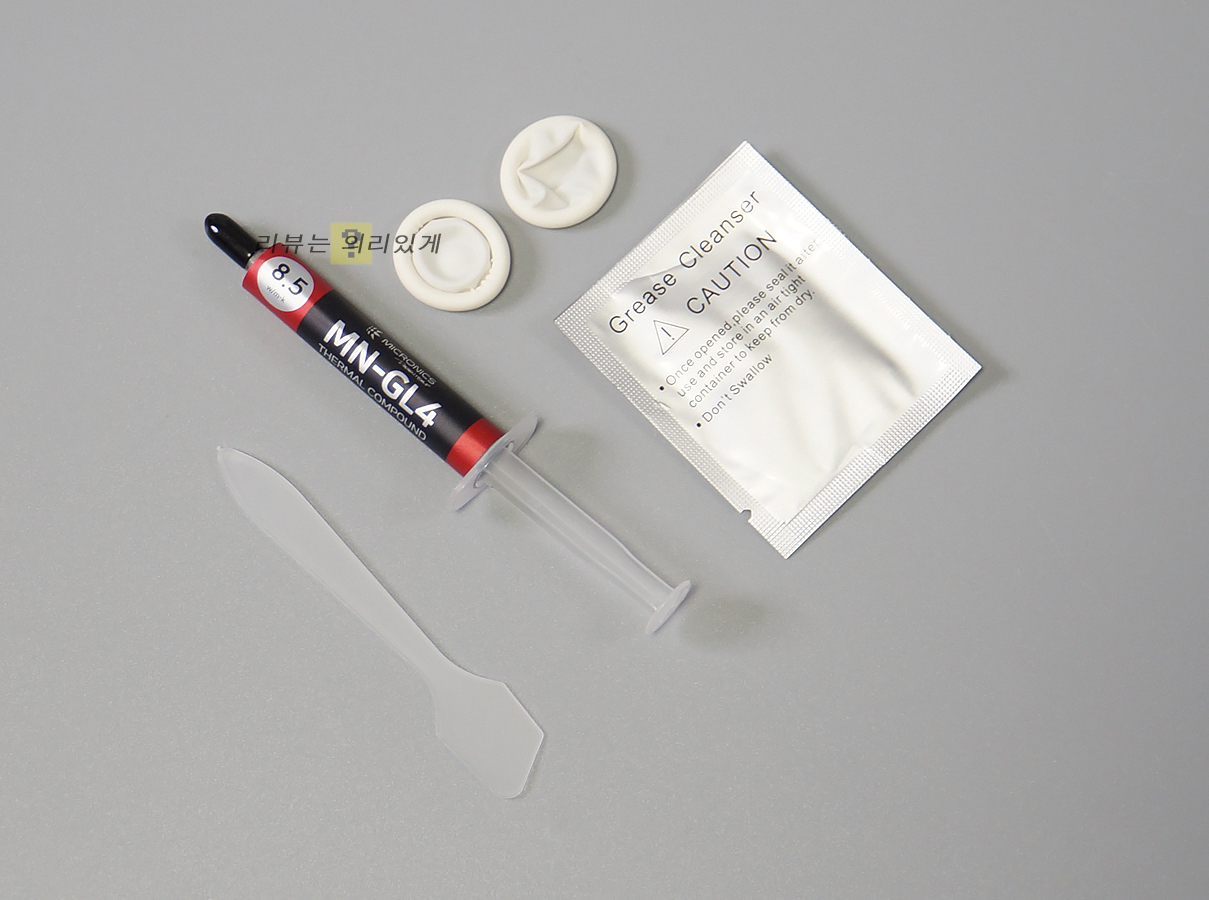 써멀을 처음 사용하다 보면 손에 써멀이 묻기도 합니다. 생각보다 잘 지워지지도 않아 불편함을 느낄 수 있는 데 이를 방지하기 위함인지 구성품으로 골무와 스크래퍼를 제공하고 있습니다. 골무를 사용하면 써멀이 묻는 것을 방지해 주며 스크래퍼를 사용하면 써멀을 얇게 펴 바를 수 있기 때문에 이전 보다 제품을 편하게 사용할 수 있습니다. 또한 제품 성능 또한 오버클럭 유저가 아니라면 적당한 성능을 보여주고 있기 때문에 무난하게 사용할 수 있을 것으로 생각합니다.