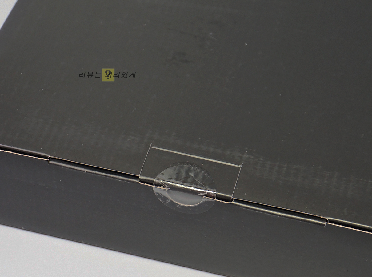 팜레스트가 기본 제공되고 있어서인지 박스 크기는 키보드에 비해 큰 편입니다. 제품 특징에 대한 간단한 설명을 확인할 수 있으며 봉인 스티커가 부착되어 있습니다.