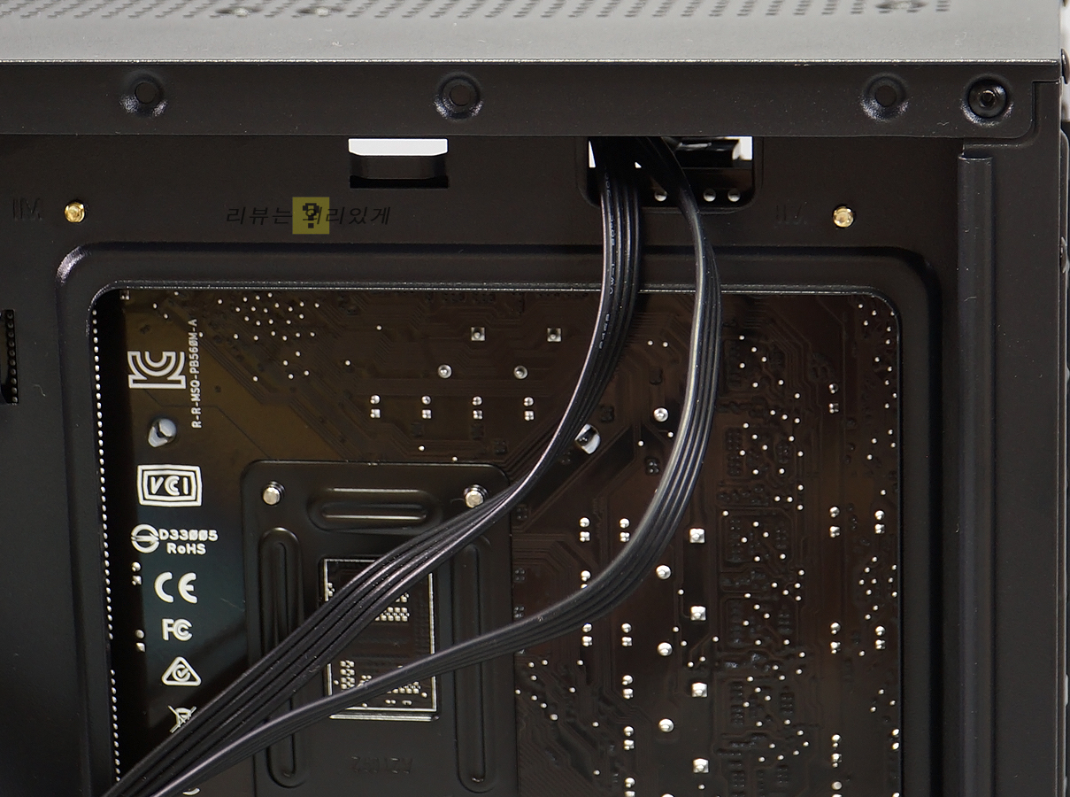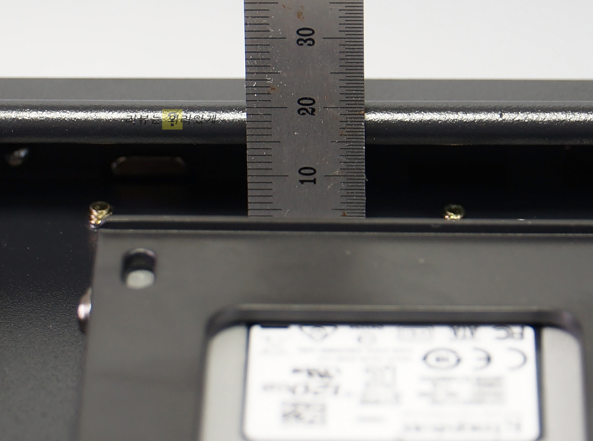 선 정리 공간은 측면 기준 약 15mm로 확인되었습니다. 내부 공간이 여유롭다 생각되지 않지만 조립이 어려울 정도로 협소하다 생각하지는 않습니다.