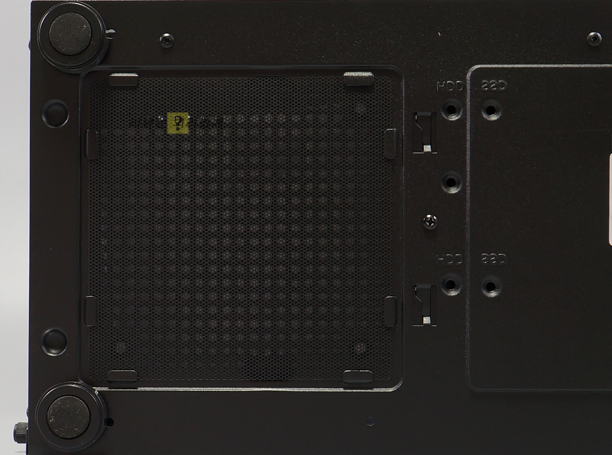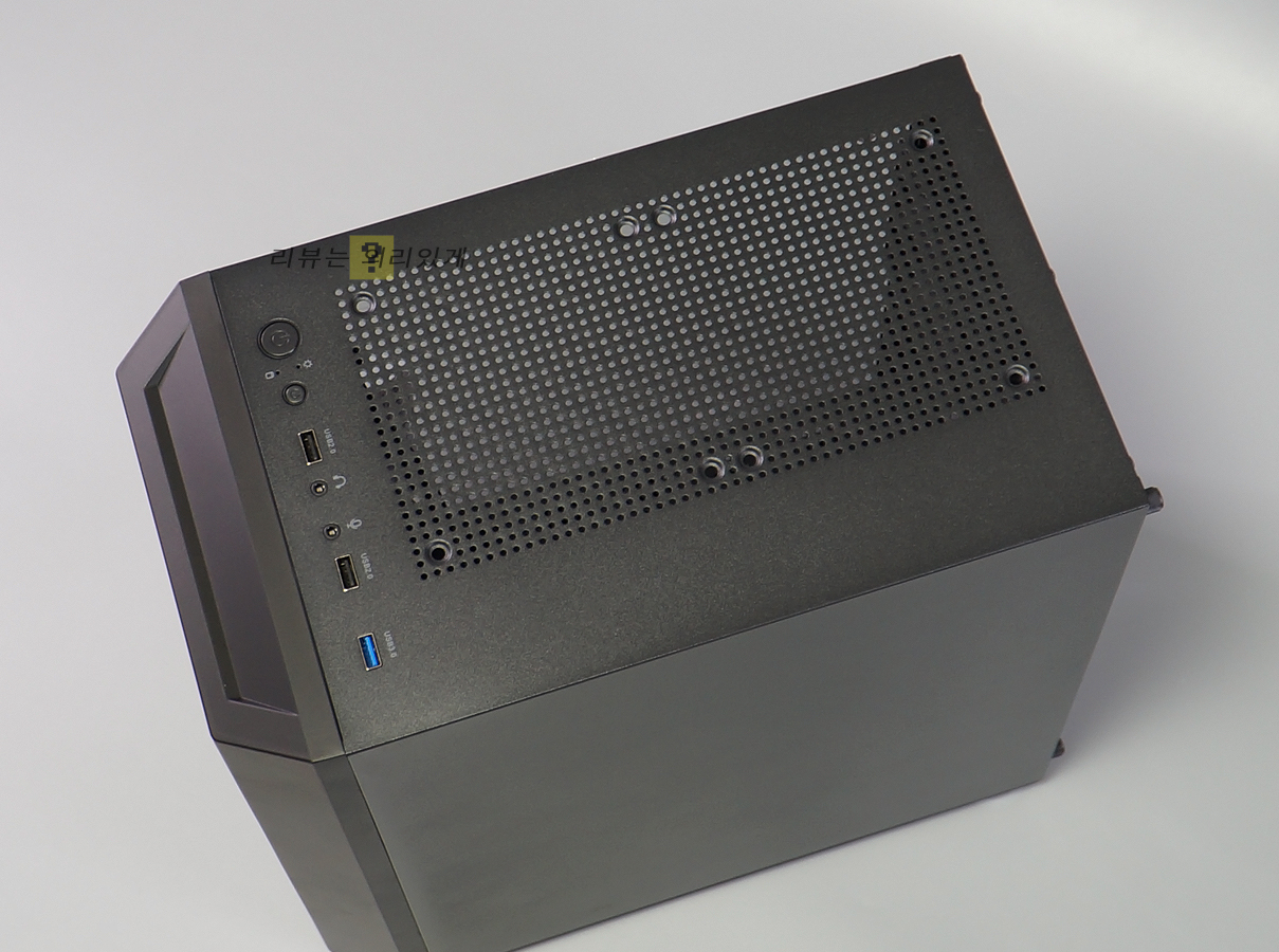 물론 보는 시각에 따라 나름 가성비 케이스로 볼 수 있습니다. 그러나 2만 원대 케이스로 출시하기 위해 여러 부분에서 원가 절감을 진행하였으며, 상단 먼지 필터와 쿨링팬이 생략되었습니다. 전면 역시 팬 장착을 생략하였으며, 추가 장착을 위한 공간을 제공하고 있습니다.