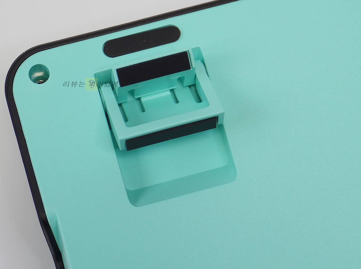 바닥면에는 미끄럼 방지를 위한 패드를 부착하였으며 배출구가 없는 것으로 보아 생활 방수는 지원하지 않는 것으로 생각됩니다. 높이 조절 받침은 2단계 조절이 가능하며 각 받침에는 패드를 부착하였습니다.