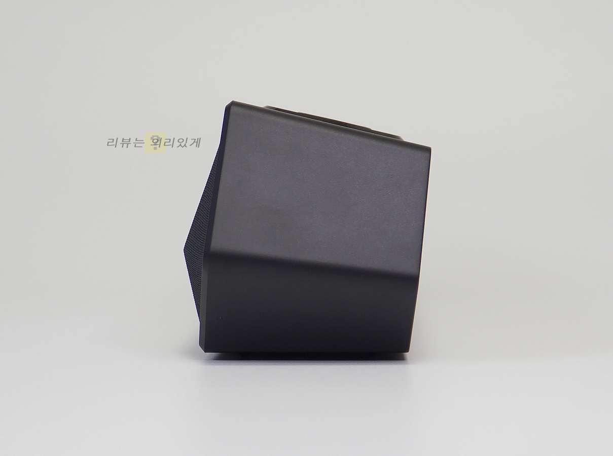 기본적으로 사운드바 스피커는 막대기 같은 외형으로 모니터 받침 등에 올려두고 사용하기 적당합니다. 이를 고려하여 받침 높이를 늘리거나 아니면 비교적 작게 만들기도 하는데, 아쉽게도 받침은 사운드 출력 왜곡을 막기 위한 용도가 더 큰 까닭인지 매우 낮은 편이었습니다. 하지만 입체적인 디자인과 양쪽을 뾰족하게 만든 디자인 등은 나름의 콘셉트에 충실해 보이기도 하였습니다.