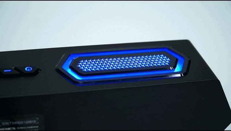 조명 효과는 상단 우퍼, 조작 버튼과 하단에서 각각 점등됩니다. 소프트웨어를 통한 조명 제어도 가능하나 소프트웨어 없이 사용한다면 전원 버튼을 이용하면 되지만 밝기를 포함한 기능을 사용할 수 없어 소프트웨어 대비 제약이 있습니다. 페어링 모드로 진입하면 조작 버튼에 파란색 조명이 깜빡이며 연결이 필요하다는 것을 시각적으로 알려주고 있습니다.