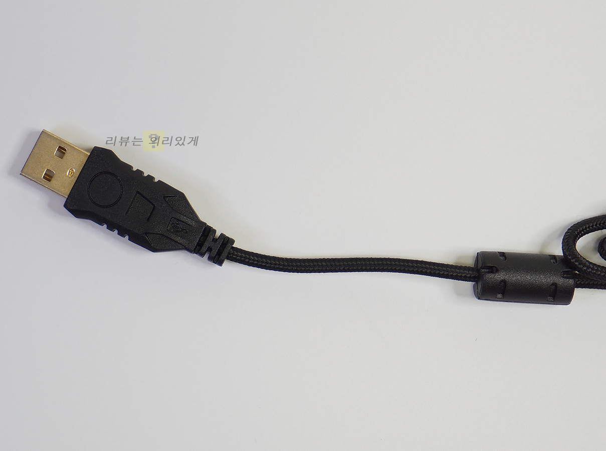 케이블은 단선과 선 꼬임 방지를 위해 패브릭 방식이 적용되었으며 노이즈 필터를 부착하였습니다. USB 커넥터는 금 도금 처리를 하였으며 내구성 강화를 위한 커버가 추가되었습니다.