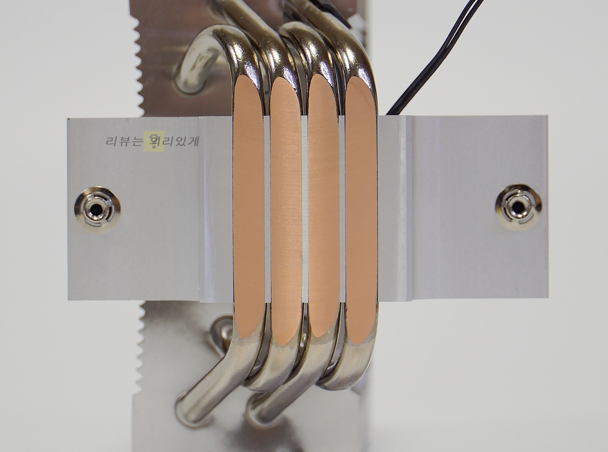 앞서 말한 바와 같이 히트파이프가 히트싱크를 관통하는 방식을 채택하였으며 히트파이프는 2개씩 서로 다른 위치에 부착하였습니다.