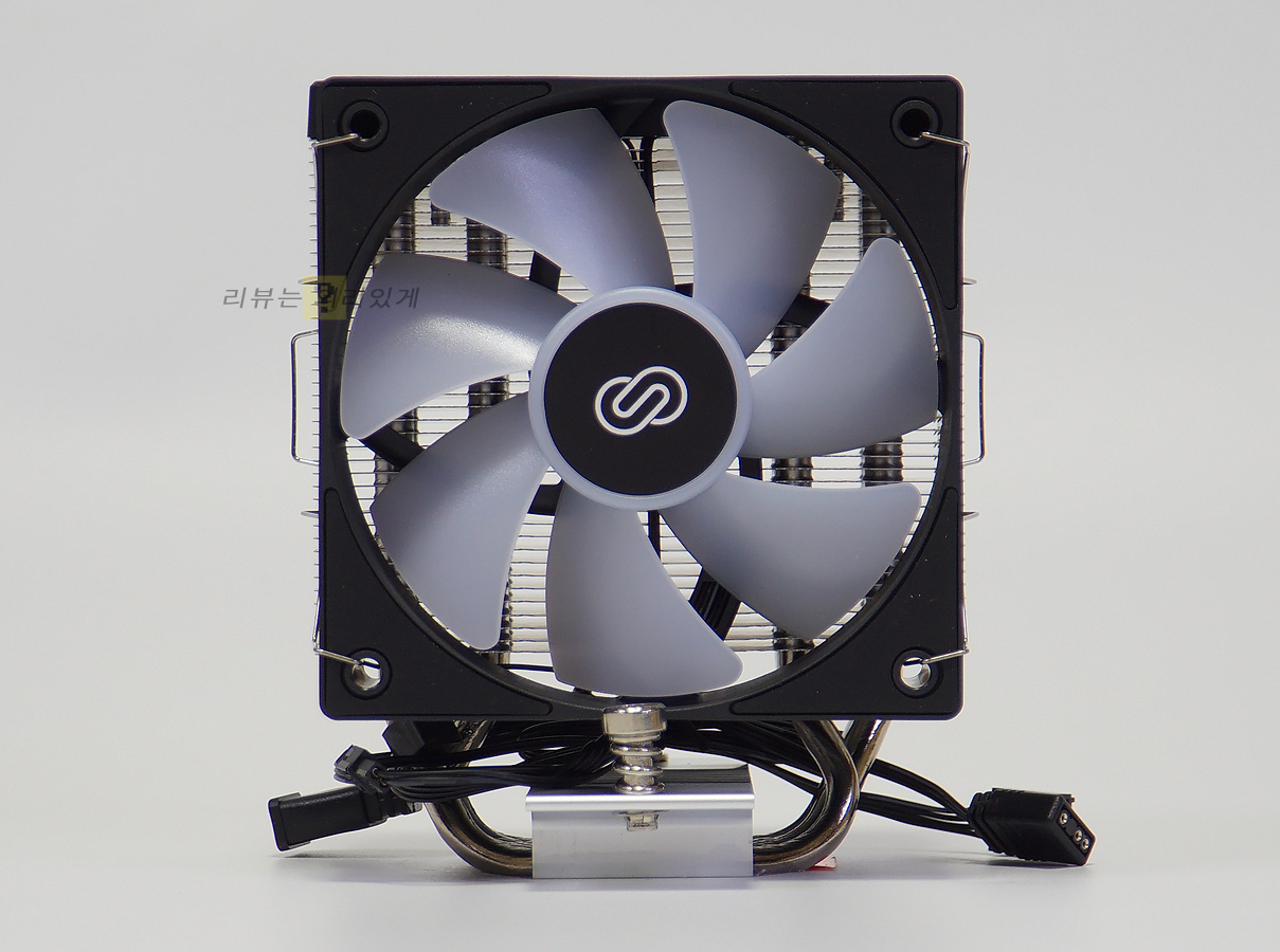 하지만 non-LED와 ARGB 두 가지 타입을 함께 출시하여 사용자의 선택의 폭을 넓혀주었으며 조립 부품의 경우 인텔과 AMD의 최신 소켓을 모두 지원하고 있음에도 공용으로 사용하는 부품이 있을 정도로 상당히 간소화하였습니다. 여기에 온도 측정을 위한 디스플레이가 상단에 부착되어 있는데 이는 커버를 겸하고 있어 제품 디자인에 좋은 영향을 주고 있습니다. 다만 온도 측정은 CPU가 아닌 히트파이프에 센서를 부착하는 방식으로 사용되어 메인보드에 USB 커넥터를 연결하는 방식과 달리 별도의 연결이 필요하지는 않지만 온도의 기준이 명확히 다르므로 실제 CPU 온도를 측정하는 것은 아닙니다.