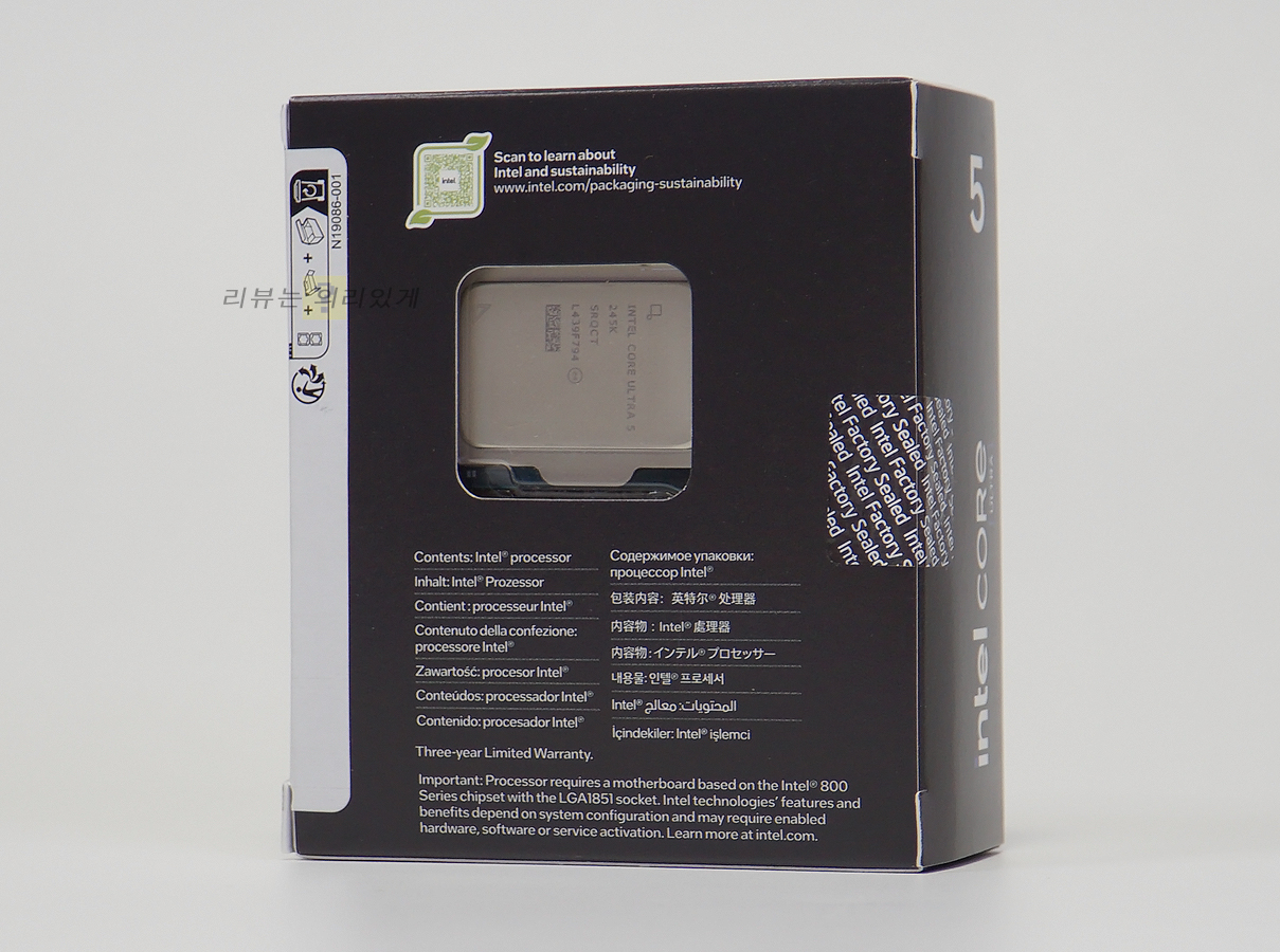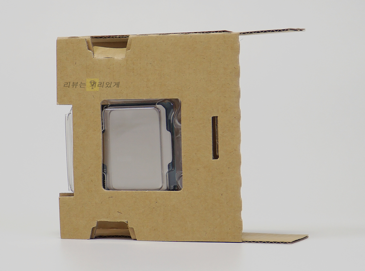 인텔 K 시리즈는 번들 쿨러가 제공되지 않아 패키지 박스가 작은 편입니다. 내부에는 파손 방지를 위한 종이 포장이 추가되었습니다.