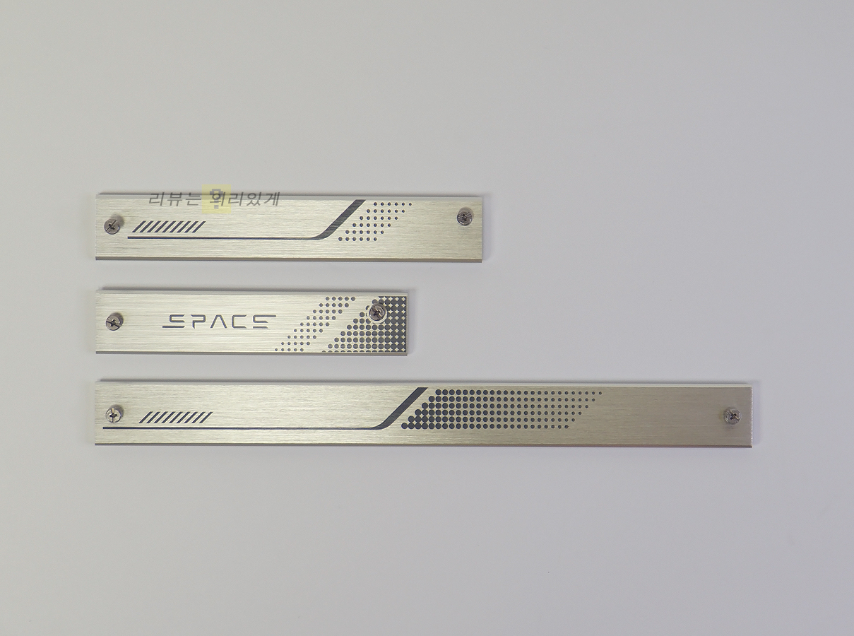 M.2 SSD 방열판에는 서멀 패드가 부착되어 있으며 이물질 유입 방지를 위해 보호 필름이 부착되어 있습니다. 특히 하단의 경우 2개의 M.2 SSD가 위치해 있기 때문에 막대기 같은 형태로 되어 있는 것이 특징입니다.