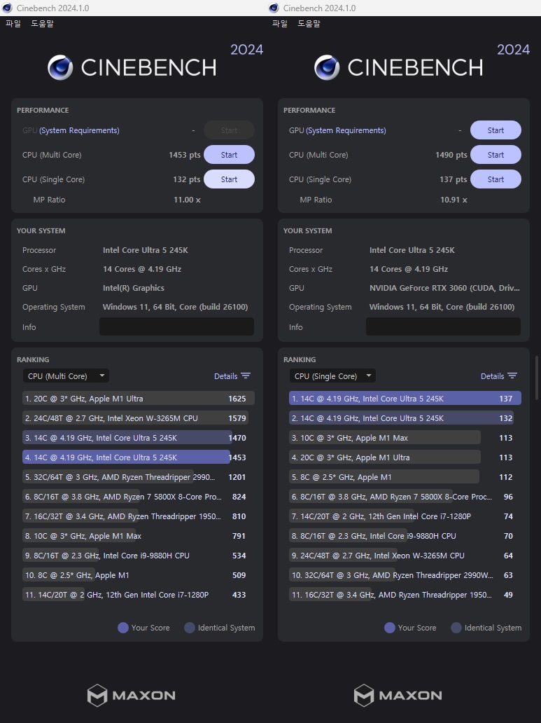 | 인텔 코어 울트라 5 245K CPU 작업 및 게임 성능은? (0) | 2025.06.02 |