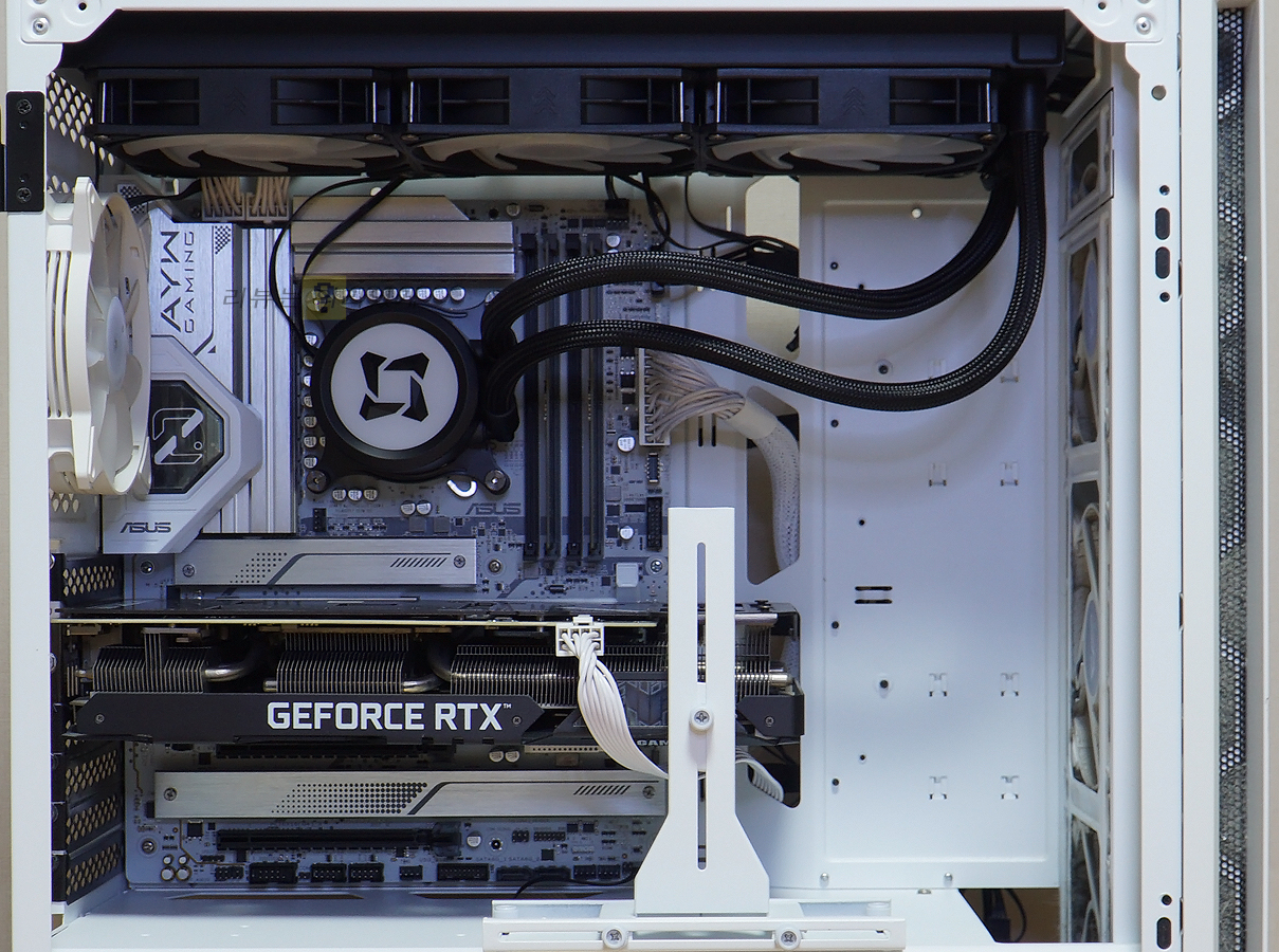 에이수스 Z890 AYM GAMING WIFI W는 이러한 K 버전 CPU에 사용하기 적합한 메인보드로서 12+1+2+1페이즈 전원부와 최대 DDR5 9066MHz (PC5-72500)까지 지원하며 PCIe5.0를 제공하고 있어 최신 그래픽카드와 M.2 SSD를 사용하기 좋습니다. 썬더볼트를 사용하기 위해서는 헤더에 PCIe 카드를 장착해야 하지만 완전히 지원하지 않는 것은 아닙니다.