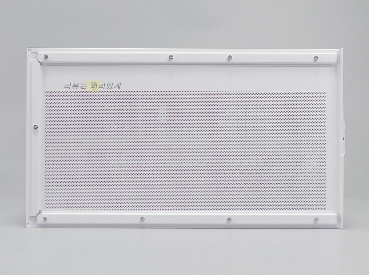 상단 패널의 경우 수랭 쿨러 및 쿨링팬 장착을 고려하여 메쉬 구조를 채택하였습니다. 최대 480mm 라디에이터 장착을 지원하고 있어 사이즈가 넉넉한 편입니다.