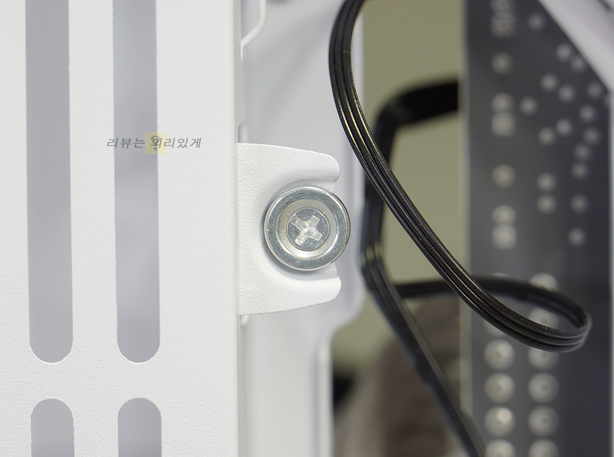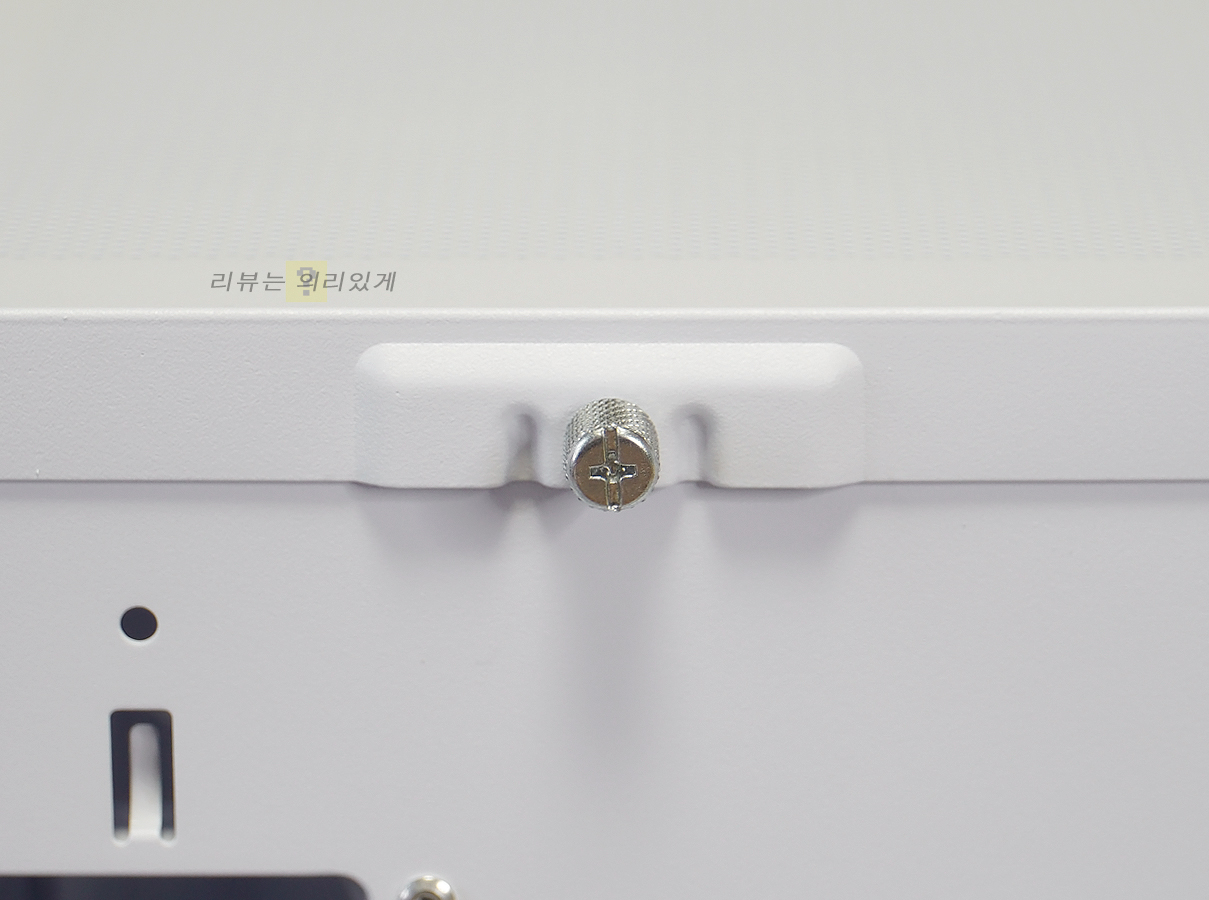 상단 패널이 분리되는 구조를 채택하였는데 손나사로 고정하는 방식입니다. 다만 측면 패널 분리를 위해서는 반드시 상단 패널을 먼저 분리해야 하는 번거로움이 있습니다.