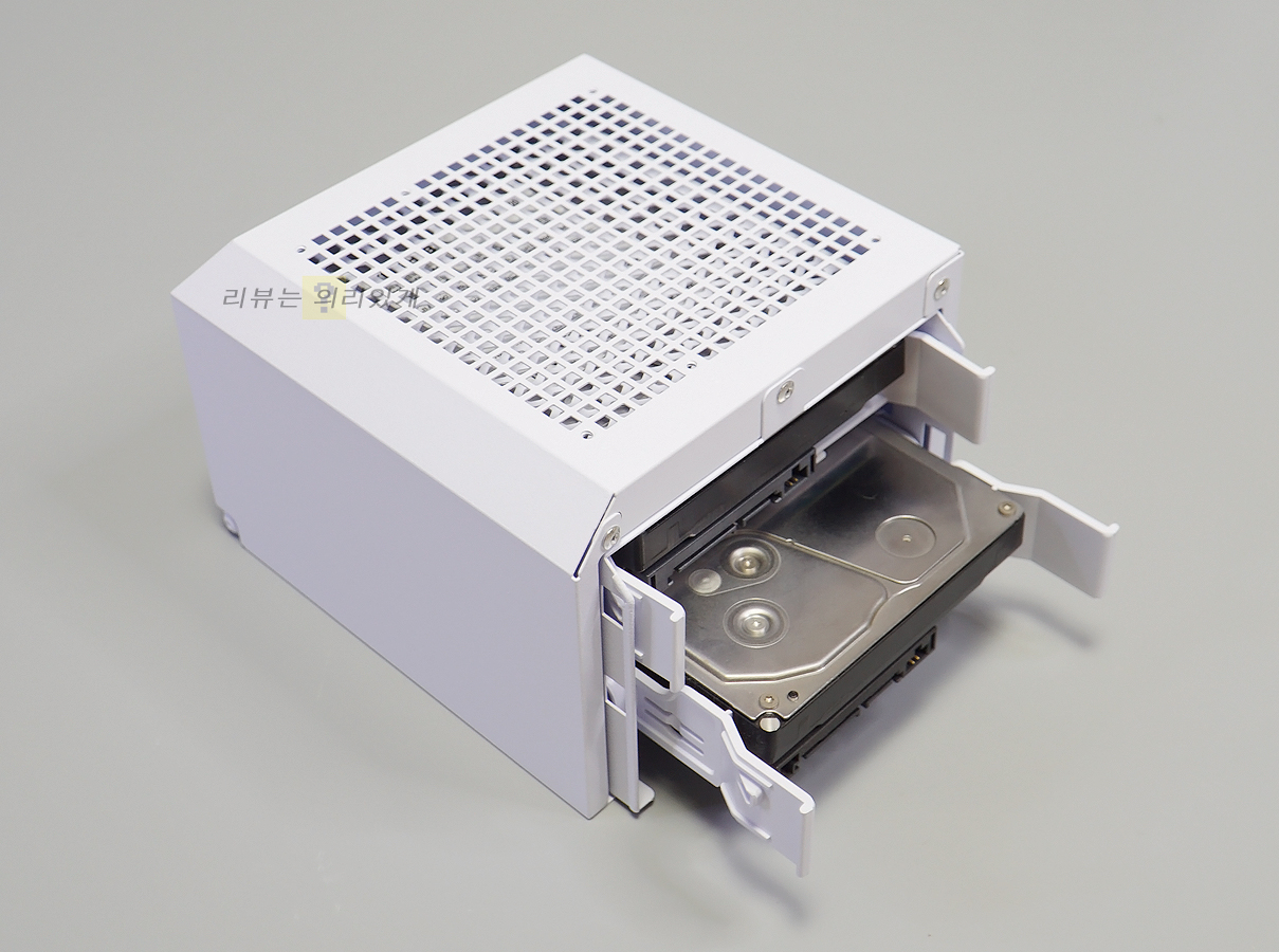 측면 스토리지 확장 도어에는 SSD와 HDD를 각각 최대 4개까지 장착할 수 있습니다. 자석을 부착하여 여닫기 편리합니다.