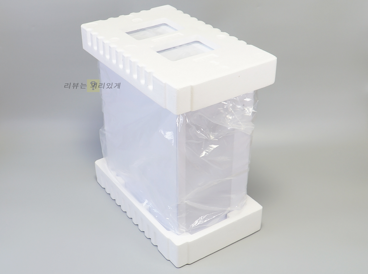 빅타워라는 사이즈에 맞는 크기와 묵직함을 확인할 수 있습니다. 내부에는 제품 보호를 위한 비닐 포장과 스티로폼이 추가되었습니다.