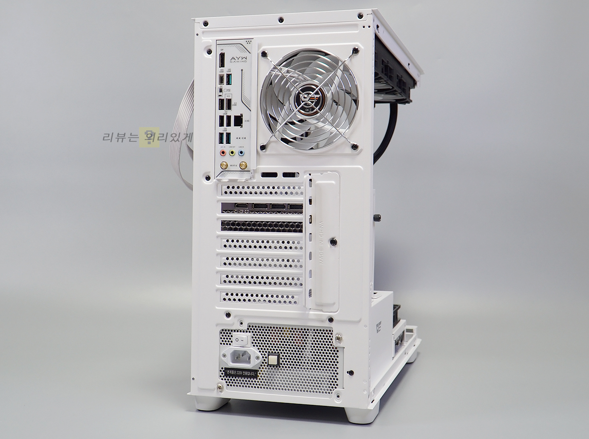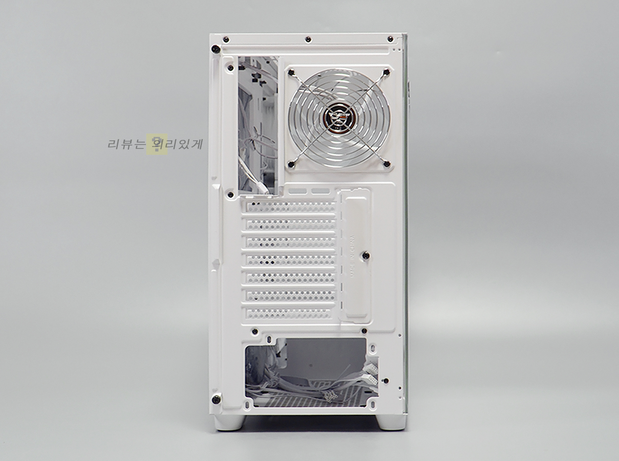 후면에는 PCI 슬롯 가이드가 제공되고 있으며 후면 팬에는 그릴을 부착하여 사고 방지에 도움을 주고 있습니다.
