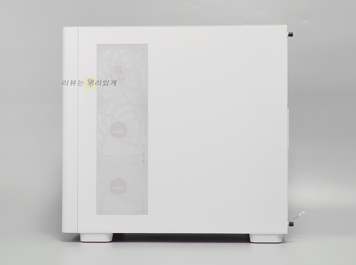 측면에는 강화유리와 패널이 각각 사용되었으며 측면 쿨링을 고려하여 타공망을 추가하였습니다.