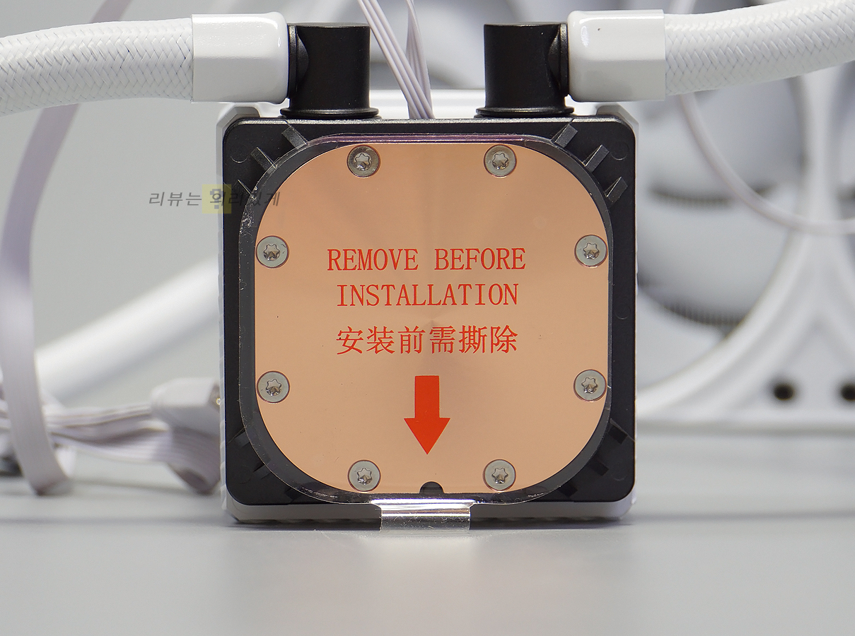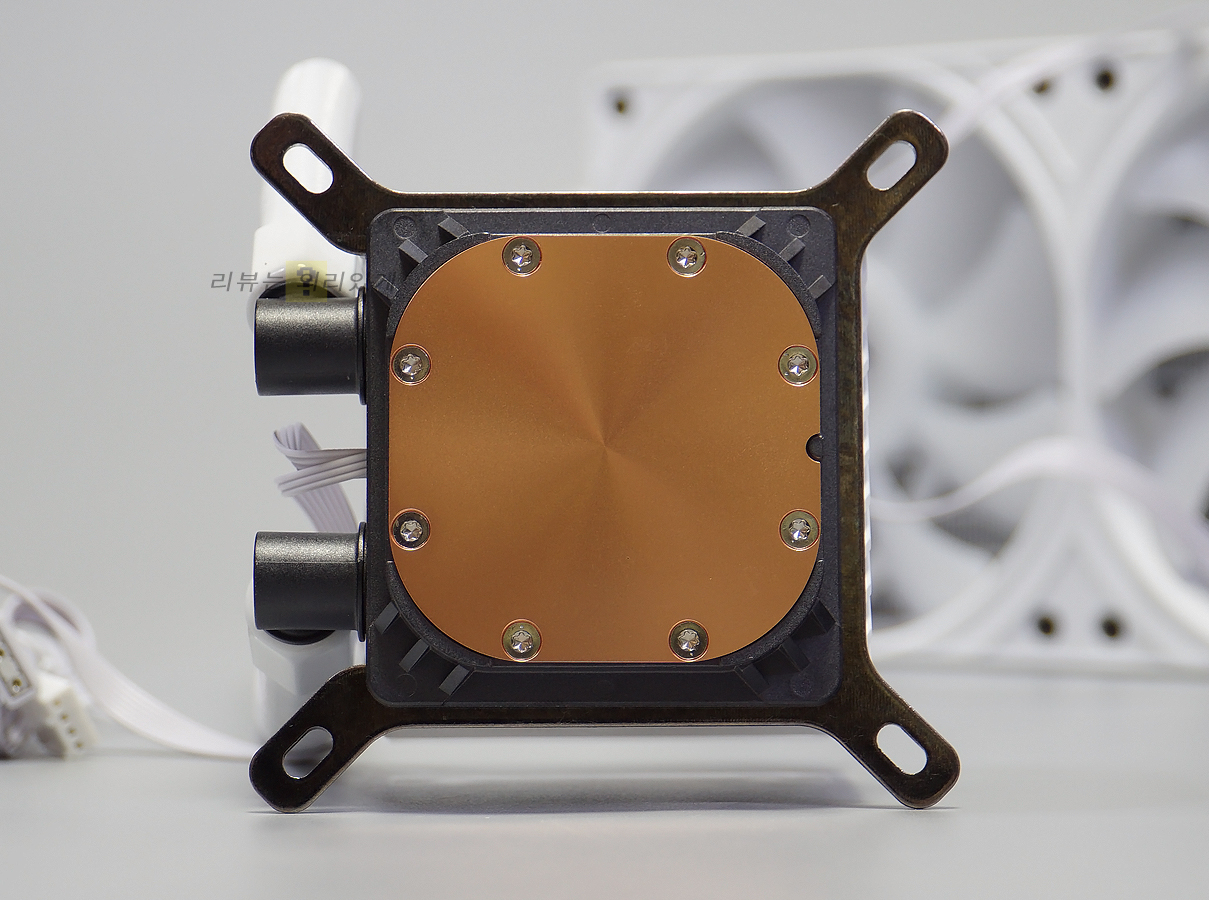 라디에이터는 360mm로 흔히 알고 있는 수랭 쿨러에서 사용되는 형태에서 크게 벗어나지 않았습니다. 튜브에는 보강을 위한 커버를 추가하였으며 쿨링팬은 나사로 결합되어 있습니다.