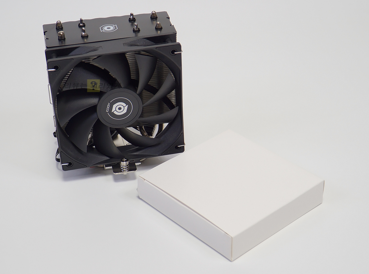 히트싱크와 쿨링팬이 결합된 상태로 제공되며 히트파이프가 뒤로 밀려난 듯한 디자인 덕분에 메인보드에 결합 시 다시 팬을 분리할 필요 없이 조립할 수 있습니다. 싱글 타워 방식으로 120mm 팬 1개와 히트싱크 1개로 구성되어 있습니다.