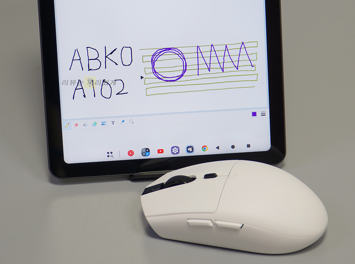 앱코 A102는 화이트, 블랙과 같은 무난한 색상 외에도 핑크, 퍼플같이 과감한 색상도 2개 추가하였는데 기존 색상들이 식상하게 느껴졌다면 이런 과감한 색상을 선택해 보는 것도 좋아 보입니다. 요즘 마우스들이 워낙 경량화를 진행하고 있어 64g의 무게가 와닿지 않을 수 있는데 내부가 보이는 벌집형 구조를 하지 않은 데다 제품 가격대를 감안하면 제법 가벼운 편입니다. 기본적으로 무선으로 사용하며 연속 사용 시간 최대 170시간을 제공하고 있어 무난히 사용할 수 있으나 유선 사용 시 케이블 길이가 짧아 불편함을 느낄 수도 있습니다.