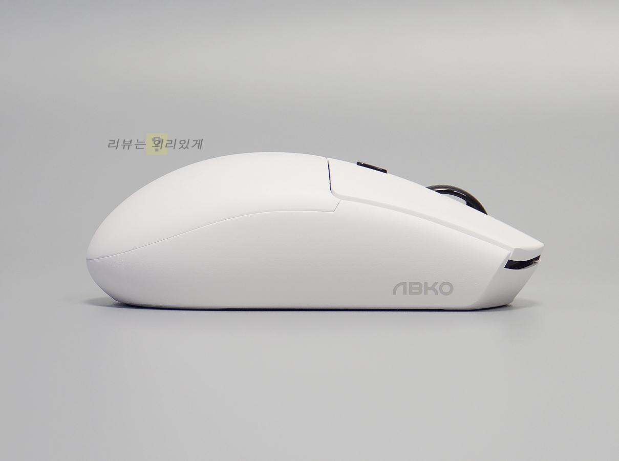 앱코 A102는 블랙, 화이트, 퍼플, 핑크 4가지 색상으로 출시되었으며 리뷰에 사용된 제품은 화이트 색상입니다. 마우스 휠 버튼과 DPI 버튼과 같이 일부를 제외하면 모두 동일한 색상을 사용하였으며 클릭 버튼과 마우스 상판과 분리된 형태를 채택하였습니다.