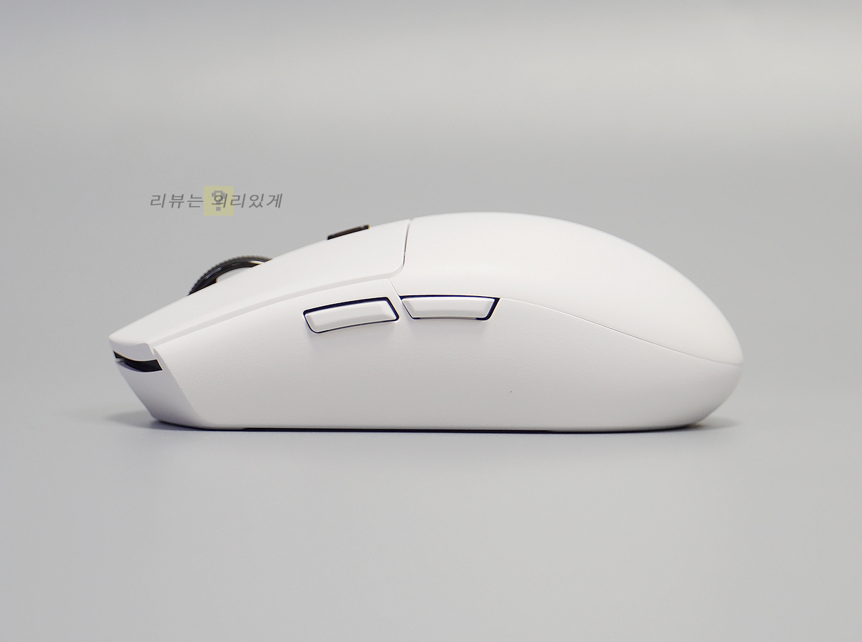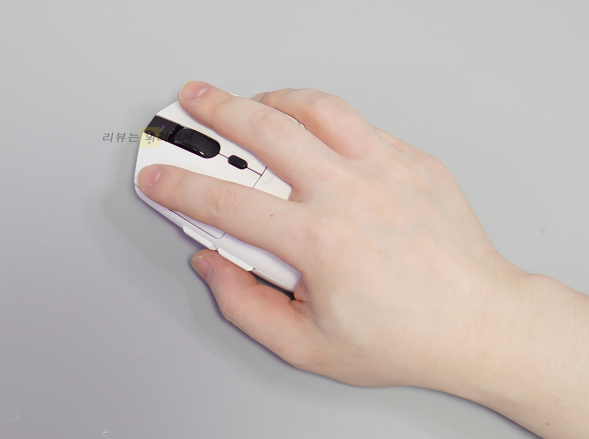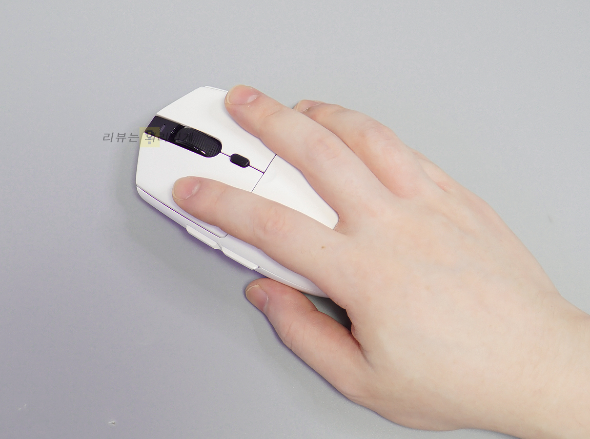 대체로 가벼운 무게 덕분에 이동이 쉽고 빠른 움직임도 가능합니다. 클로 그립이나 핑거 그립에 적합한 디자인이라 생각될 정도로 무난한 모습을 보여주었으며 측면에 미끄럼 방지를 위한 요소가 없으나 그렇게 불편하다 생각되지 않았습니다.
