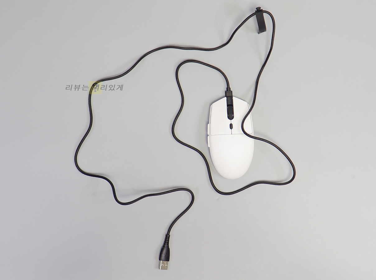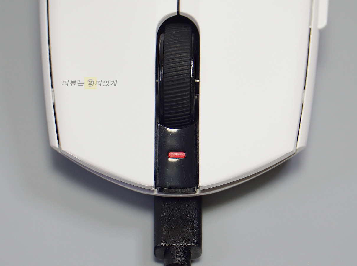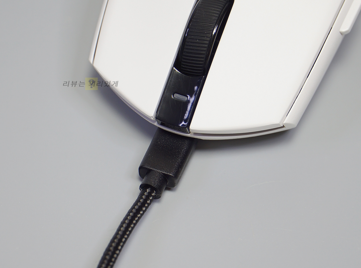 유선 사용 또는 충전을 위해서는 전면에 케이블을 연결해야 하며 제품 가격대의 한계로 인해 충전독은 제공되지 않습니다. 다만 유선 사용도 가능하다는 점에서 유선 사용을 고려하고 있다면 케이블 길이가 일반적인 유선 마우스와 동일할 필요가 있습니다. 하지만 앱코 A102의 경우 1.8m 보다 확실히 짧은 편으로 아쉽게 느껴졌습니다.